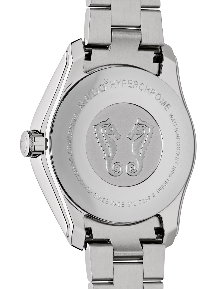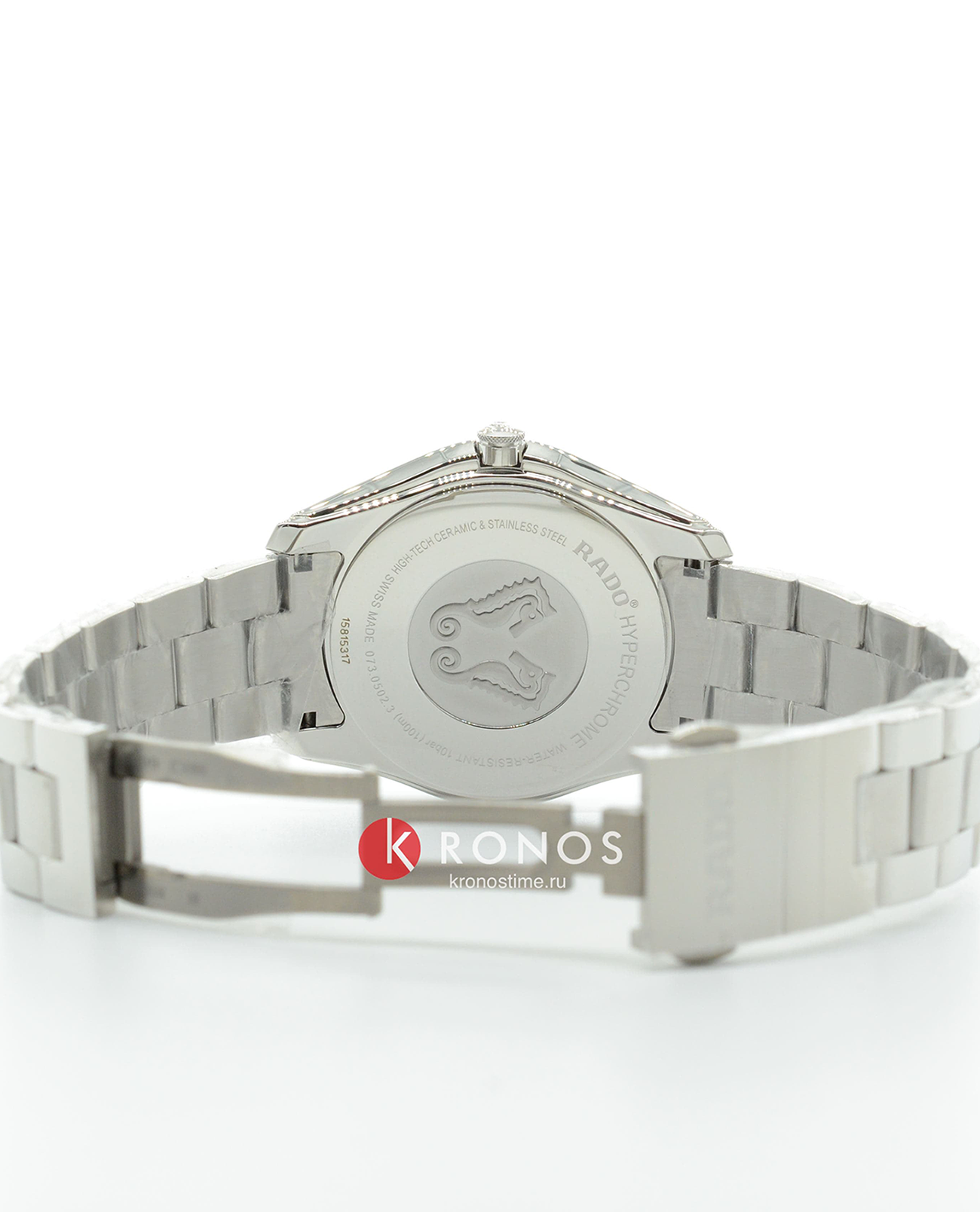 Швейцарские кварцевые часы Rado Hyperchrome R32502313. Сапфировое стеклоСапфировое стеклоПрочный и надёжный материал из кристалла сапфира синтетического происхождения, характеризующийся особой твёрдостью и устойчивостью к царапинам и повреждениям. устойчивое к мелким механическим повреждениям. Корпус изготовлен из нержавеющей стали. БезельБезельВнешний ободок, закрепляющий стекло. В спортивных часах так называется поворотное кольцо с делениями на циферблате, выполняет роль таймера – замеряет отрезки времени на шкале. Неподвижный безель – элемент декора. Однонаправленно вращающийся безель на дайверских часах позволяет фиксировать моменты погружения и выныривания на поверхность. из высокотехнологичной керамикиВысокотехнологичная керамикаИнновационный запатентованный Rado материал с гладкой или матовой поверхностью. Керамика за счёт кристаллической структуры обладает повышенной устойчивостью от возникновения царапин. Материал способен принимать температуру тела человека, обеспечивая невероятный комфорт при ношении.. Стрелки с люминесцентным покрытиемЛюминесцентное покрытиеПозволяет считывать показания времени в темноте. Производители наносят на стрелки, часовые индексы, безель или поверхность циферблата светонакопительный состав, дающий холодное свечение.. Класс водозащиты: 100 метров, позволит плавать, нырять и заниматься другими водными видами спорта. Браслет из стали на раскладной застёжкеРаскладная застёжкаТакой тип застёжки используется только на браслетах из металла. Она никогда не раскрывается полностью, происходит разделение на 2 и более частей. Раскладывающая застёжка снизит вероятность потери часов к минимуму..
