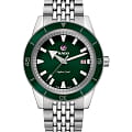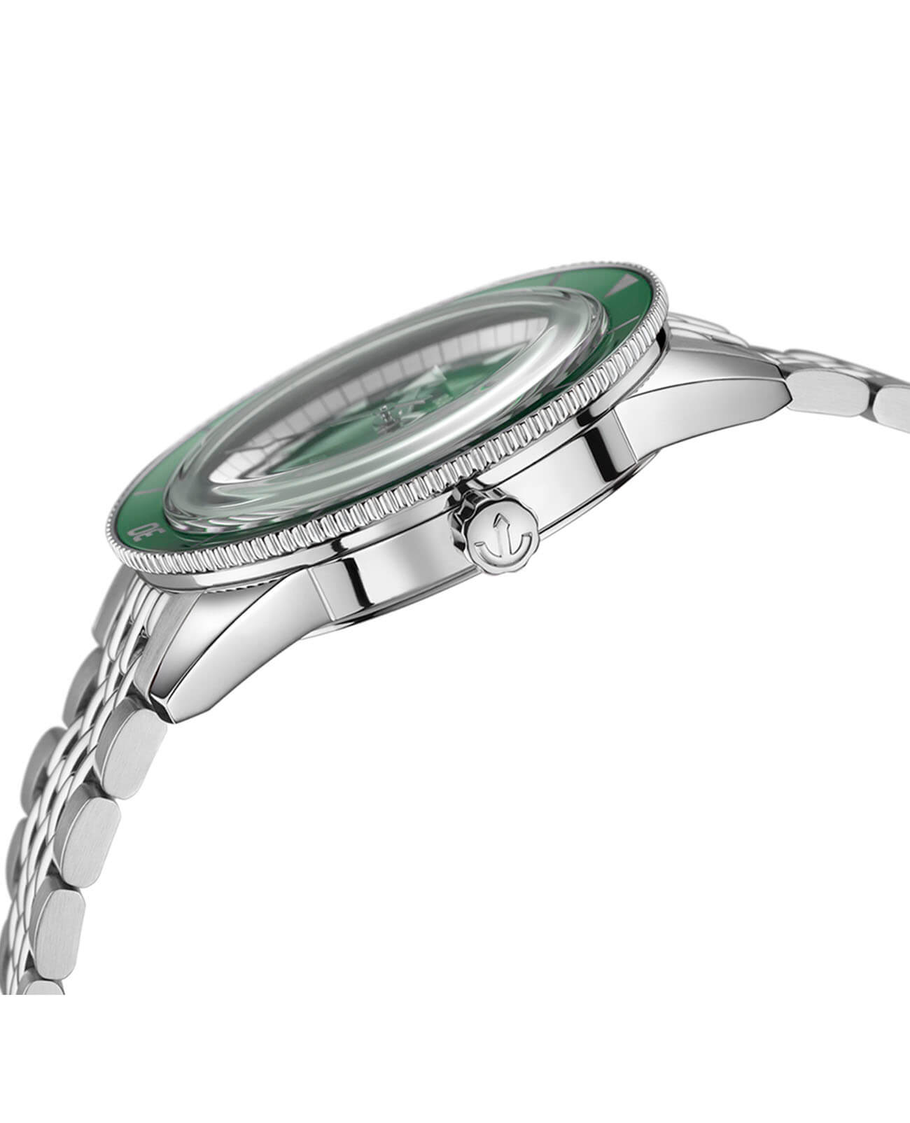 Премиальная модель обладает винтажным характером, зелёный циферблат обращает наше внимание на оригинальные стрелки в виде меча и стрелы. Часы обладают высокими показателями водонепроницаемости - сохранение герметичности до 20 бар, что стало возможным благодаря задней крышке и заводной головке с винтовыми фиксаторами. Автоподзавод. Швейцарский калибр ETA C07.611 с 80-часовым резервом хода. Антибликовая обработка сапфирового стекла. Корпус из хирургической стали 316L, безельБезельВнешний ободок, закрепляющий стекло. В спортивных часах так называется поворотное кольцо с делениями на циферблате, выполняет роль таймера – замеряет отрезки времени на шкале. Неподвижный безель – элемент декора. Однонаправленно вращающийся безель на дайверских часах позволяет фиксировать моменты погружения и выныривания на поверхность. из высокотехнологичной керамикиВысокотехнологичная керамикаИнновационный запатентованный Rado материал с гладкой или матовой поверхностью. Керамика за счёт кристаллической структуры обладает повышенной устойчивостью от возникновения царапин. Материал способен принимать температуру тела человека, обеспечивая невероятный комфорт при ношении.. Прочный стальной браслет. Отображение числа. Диаметр корпуса: 42 мм.