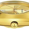 Женские механические часы с автоподзаводом Rado из коллекции Diastar Original — это элегантный аксессуар с классическим дизайном. Корпус овальной формы, диаметром 30 мм и толщиной 11 мм, выполнен из CeramosCeramosМатериал являет собой инновационное сочетание высокотехнологичной керамики и сплава металла. Он объединяет керамическую устойчивость к царапинам и металлический роскошный блеск. с PVD-покрытиемPVDУльтратонкое покрытие наносится в технике вакуумного напыления, сочетает в себе нитрид титана особой прочности со слоем золота или оксида хрома. Несёт в себе декоративную или защитную функцию. золотого цвета. Неподвижный безельБезельВнешний ободок, закрепляющий стекло. В спортивных часах так называется поворотное кольцо с делениями на циферблате, выполняет роль таймера – замеряет отрезки времени на шкале. Неподвижный безель – элемент декора. Однонаправленно вращающийся безель на дайверских часах позволяет фиксировать моменты погружения и выныривания на поверхность. также изготовлен из Ceramos. Циферблат жёлтого цвета оформлен без индексов, с золотистыми стрелками. Циферблат защищён сапфировым стекломСапфировое стеклоПрочный и надёжный материал из кристалла сапфира синтетического происхождения, характеризующийся особой твёрдостью и устойчивостью к царапинам и повреждениям. с антибликовым покрытиемАнтибликовое покрытиеСлой оксида металла в 0,13-0,3 микрон, благодаря которому стекло часов не бликует и не отражает свет. Антибликовое покрытие уменьшает отражение света в 10 раз, обеспечивая отличную читаемость показателей циферблата. на внутренней стороне. Стрелки с люминесцентным покрытиемЛюминесцентное покрытиеПозволяет считывать показания времени в темноте. Производители наносят на стрелки, часовые индексы, безель или поверхность циферблата светонакопительный состав, дающий холодное свечение. Super-Luminova®, обеспечивающим хорошую читаемость в темноте. Механизм — автоматический калибр R586 с запасом хода 48 часов, частотой 28 800 полуколебаний в час и 25 камнями. Окошко даты расположено в положении 6 часов. Часы оснащены стальным браслетом с застёжкой «бабочка» с кнопкамиЗастёжка "бабочка"Такой вид застёжки дополняется предохранителями, помогающими избежать случайного раскрытия браслета. Обладают изящным исполнением. . Водонепроницаемость 100 м позволяет использовать часы для плавания. Гарантия — 5 лет на механизм, 2 года на изделие. Идеальный выбор для тех, кто ценит стиль, точность и швейцарское качество.