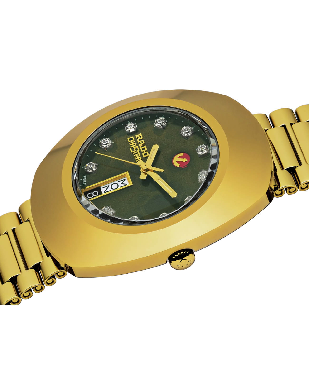 Мужские часы Rado The Original Automatic R12413533 с надёжным автоматическим механизмом. Корпус и браслет часов выполнены из нержавеющей стали c PVD-покрытиемPVDУльтратонкое покрытие наносится в технике вакуумного напыления, сочетает в себе нитрид титана особой прочности со слоем золота или оксида хрома. Несёт в себе декоративную или защитную функцию.. Стальной браслет на раскладной застёжкеРаскладная застёжкаТакой тип застёжки используется только на браслетах из металла. Она никогда не раскрывается полностью, происходит разделение на 2 и более частей. Раскладывающая застёжка снизит вероятность потери часов к минимуму.. Класс водозащиты: 30 метров, позволит защитить корпус от случайных брызг или капель дождя. Циферблат с узорами инкрустирован сапфирами. Окошко даты и дня недели находится в положении 6 часов. Стрелки и метки с люминесцентным покрытиемЛюминесцентное покрытиеПозволяет считывать показания времени в темноте. Производители наносят на стрелки, часовые индексы, безель или поверхность циферблата светонакопительный состав, дающий холодное свечение..