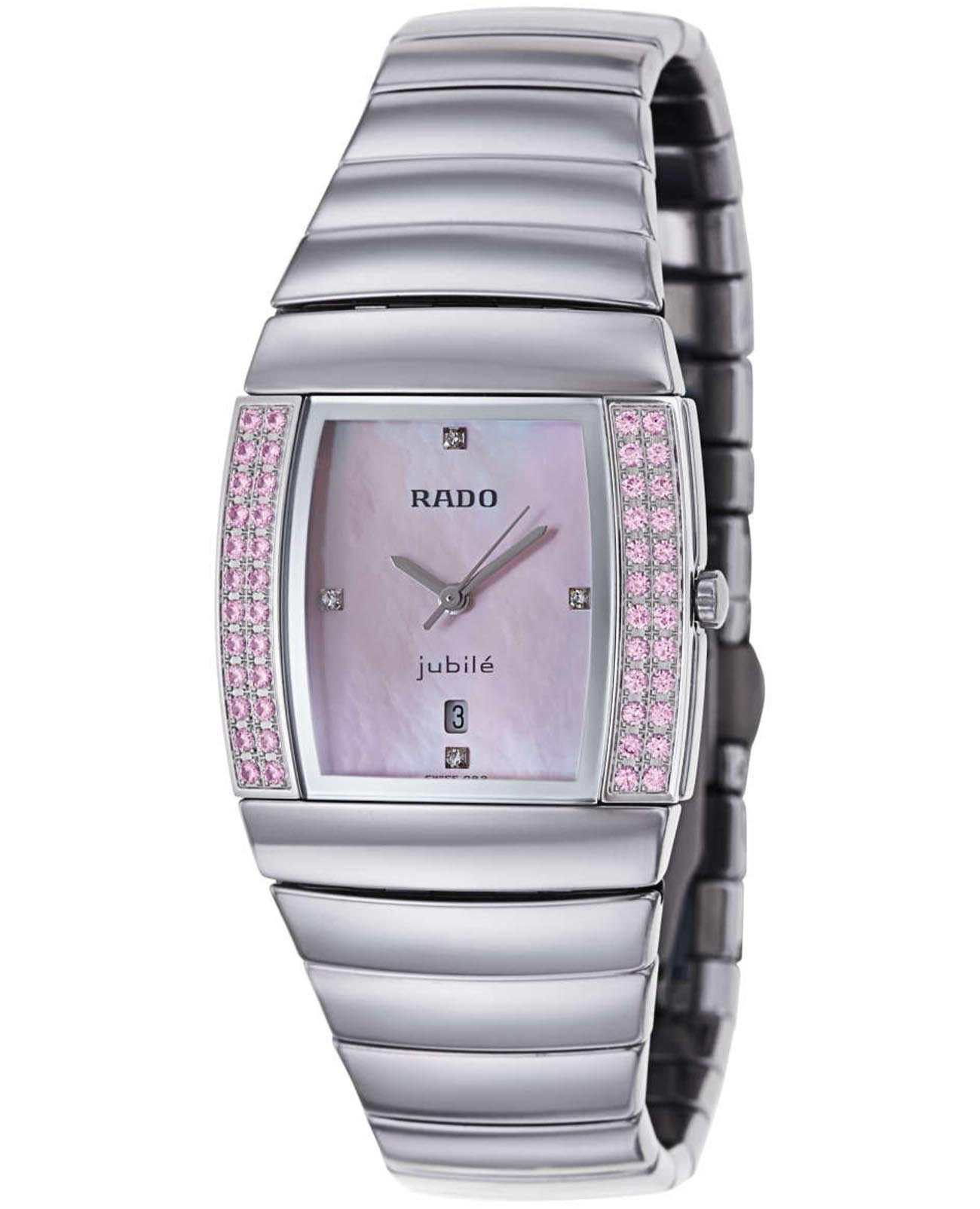 Часы Rado Sintra R13581922, произведение искусства и технологическое чудо, станут прекрасным дополнением к коллекции. Эти швейцарские часы оснащены кварцевым механизмом с указателем даты и тремя стрелками, заключенным в корпус из нержавеющей стали. Браслет изготовлен из высокотехнологичной керамикиВысокотехнологичная керамикаИнновационный запатентованный Rado материал с гладкой или матовой поверхностью. Керамика за счёт кристаллической структуры обладает повышенной устойчивостью от возникновения царапин. Материал способен принимать температуру тела человека, обеспечивая невероятный комфорт при ношении. с раскладной застёжкойРаскладная застёжкаТакой тип застёжки используется только на браслетах из металла. Она никогда не раскрывается полностью, происходит разделение на 2 и более частей. Раскладывающая застёжка снизит вероятность потери часов к минимуму.. Корпус украшен 48 бриллиантами (0,50 карата). Сапфировое стеклоСапфировое стеклоПрочный и надёжный материал из кристалла сапфира синтетического происхождения, характеризующийся особой твёрдостью и устойчивостью к царапинам и повреждениям. устойчивое к появлению царапин, обладающее высокой прозрачностью. Класс водозащиты: 30 метров, позволит защитить корпус от случайных брызг или капель дождя.