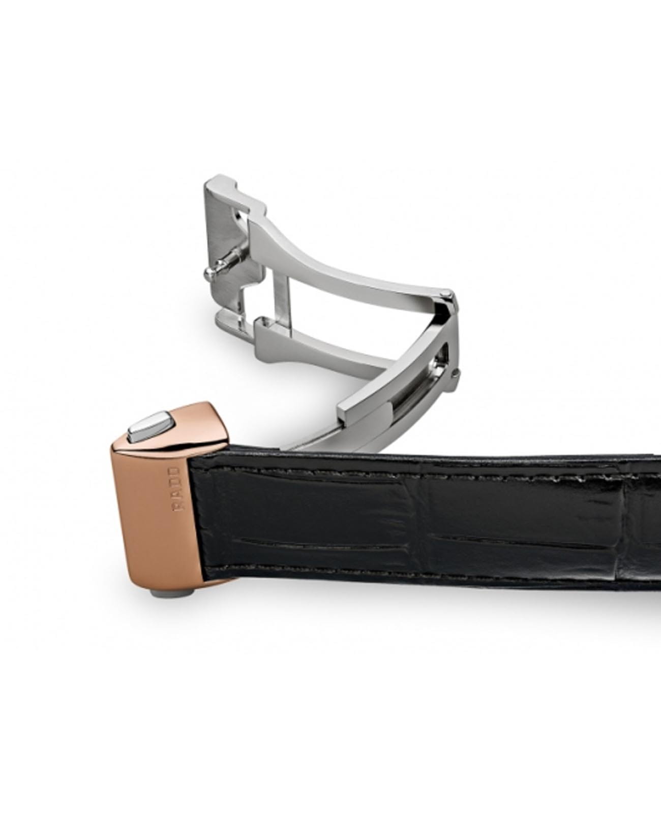 Мужские наручные часы Rado Diamaster R14068016 с надёжным автоматическим механизмом. Корпус часов выполнен из материала CeramosCeramosМатериал являет собой инновационное сочетание высокотехнологичной керамики и сплава металла. Он объединяет керамическую устойчивость к царапинам и металлический роскошный блеск. . Кожаный ремешок с раскладной застёжкойРаскладная застёжкаТакой тип застёжки используется только на браслетах из металла. Она никогда не раскрывается полностью, происходит разделение на 2 и более частей. Раскладывающая застёжка снизит вероятность потери часов к минимуму.. Класс водозащиты: 50 метров, позволит защитить корпус от случайных брызг или капель дождя. Окошко даты находится в положении 3 часа.