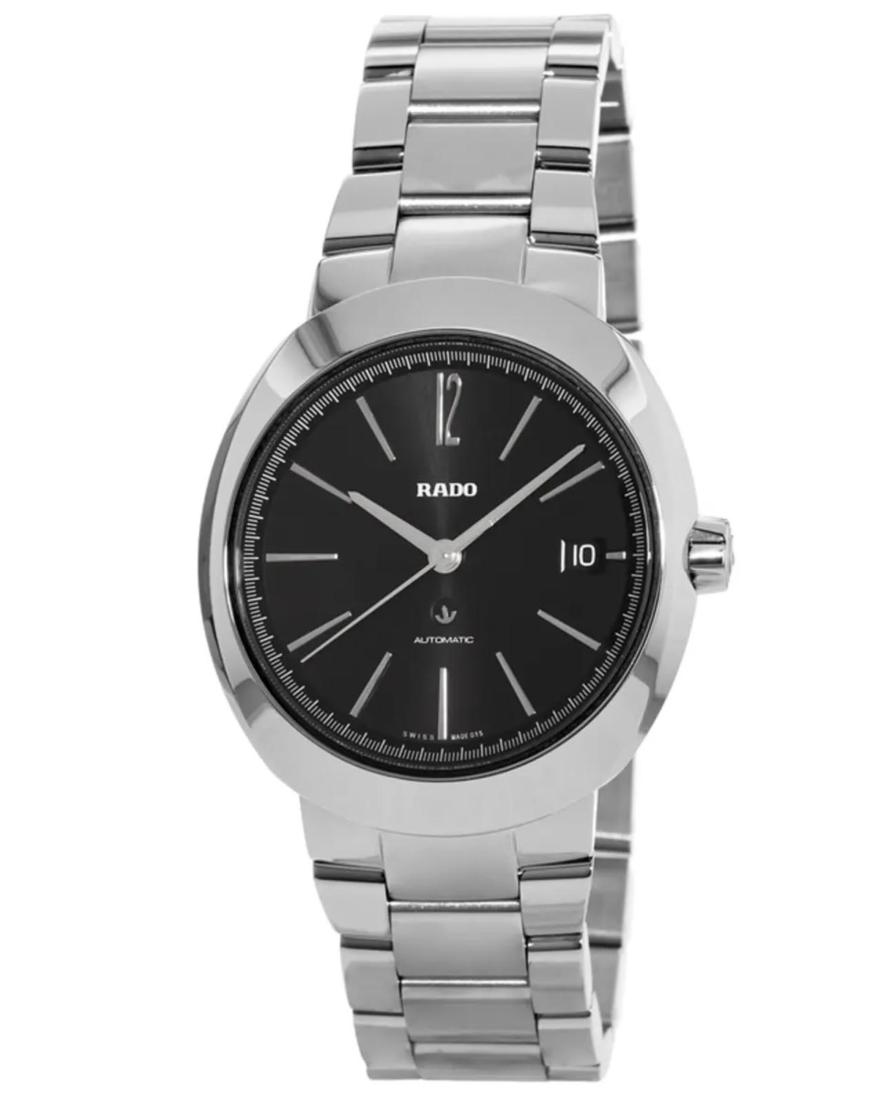 Мужские механические швейцарские часы Rado Rado D-Star R15513153. Сапфировое стеклоСапфировое стеклоПрочный и надёжный материал из кристалла сапфира синтетического происхождения, характеризующийся особой твёрдостью и устойчивостью к царапинам и повреждениям. устойчивое к мелким механическим повреждениям. Корпус часов изготовлен из нержавеющей стали. Окошко даты находится в положении 3 часа.  Класс водозащиты: 100 метров, позволит плавать, нырять и заниматься другими водными видами спорта. Браслет из нержавеющей стали на раскладной застёжкеРаскладная застёжкаТакой тип застёжки используется только на браслетах из металла. Она никогда не раскрывается полностью, происходит разделение на 2 и более частей. Раскладывающая застёжка снизит вероятность потери часов к минимуму..