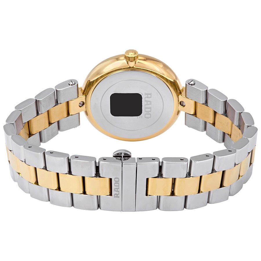 Мужские швейцарские наручные часы с надёжным кварцевым механизмом Rado Coupole R22856924. Корпус часов изготовлен из нержавеющей стали с PVD-покрытиемPVDУльтратонкое покрытие наносится в технике вакуумного напыления, сочетает в себе нитрид титана особой прочности со слоем золота или оксида хрома. Несёт в себе декоративную или защитную функцию.. Сапфировое стеклоСапфировое стеклоПрочный и надёжный материал из кристалла сапфира синтетического происхождения, характеризующийся особой твёрдостью и устойчивостью к царапинам и повреждениям. устойчивое к мелким механическим повреждениям. Стальной браслет с частичным PVD-покрытиемPVDУльтратонкое покрытие наносится в технике вакуумного напыления, сочетает в себе нитрид титана особой прочности со слоем золота или оксида хрома. Несёт в себе декоративную или защитную функцию. на застёжке-бабочке с кнопкамиЗастёжка "бабочка"Такой вид застёжки дополняется предохранителями, помогающими избежать случайного раскрытия браслета. Обладают изящным исполнением. . Класс водозащиты: 50 метров, позволит защитить корпус от случайных брызг или капель дождя. Окошко даты находится в положении 3 часа. Циферблат с 12 бриллиантами, весом: 0.085ct.