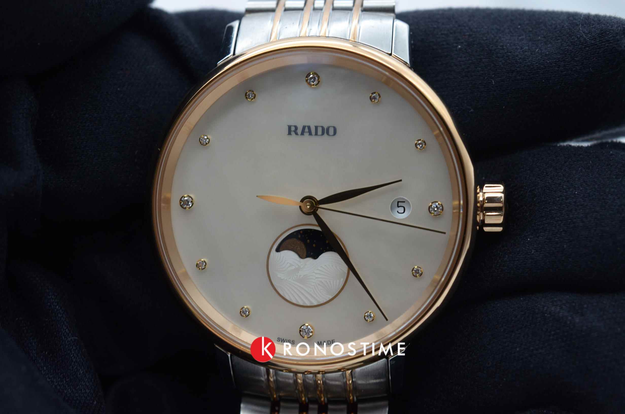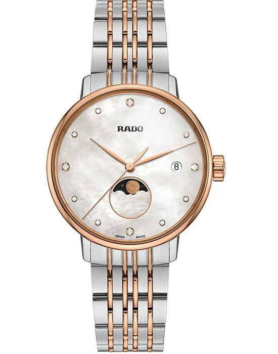 Швейцарские кварцевые часы Rado Coupole Classic Diamonds R22883923 воплощают в себе классическое очарование и утончённую элегантность. Циферблат этих часов защищён сапфировым стекломСапфировое стеклоПрочный и надёжный материал из кристалла сапфира синтетического происхождения, характеризующийся особой твёрдостью и устойчивостью к царапинам и повреждениям., которое славится своей устойчивостью к мелким механическим повреждениям, таким как царапины, что помогает сохранить их первоначальный внешний вид на долгие годы.