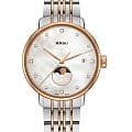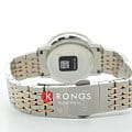 Браслет часов выполнен из стали с частичным PVD-покрытиемPVDУльтратонкое покрытие наносится в технике вакуумного напыления, сочетает в себе нитрид титана особой прочности со слоем золота или оксида хрома. Несёт в себе декоративную или защитную функцию., что придаёт им дополнительный блеск и прочность. Застёжка на раскладной застёжкеРаскладная застёжкаТакой тип застёжки используется только на браслетах из металла. Она никогда не раскрывается полностью, происходит разделение на 2 и более частей. Раскладывающая застёжка снизит вероятность потери часов к минимуму., что обеспечивает удобную и надёжную фиксацию на запястье.