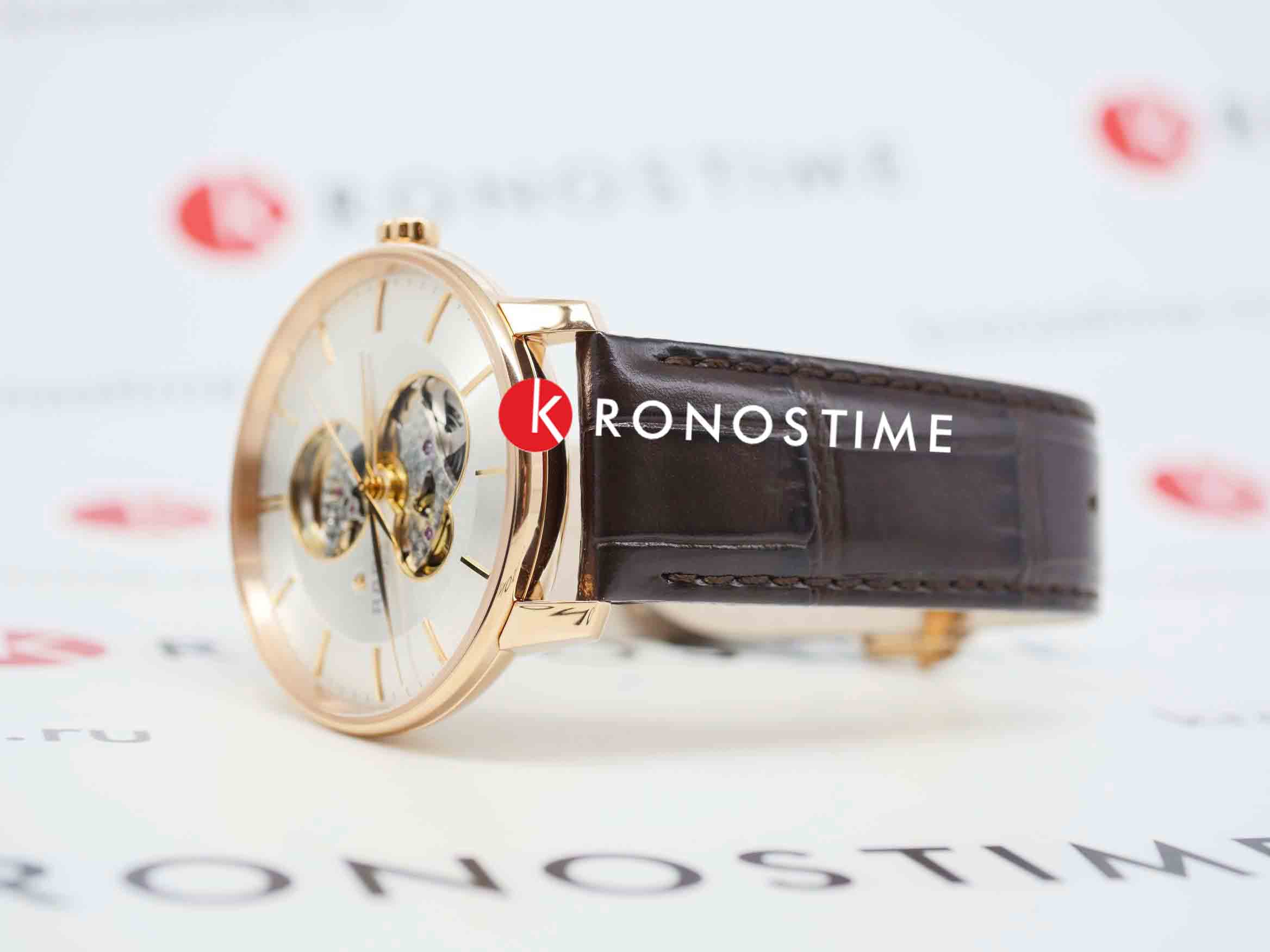 Аксессуар в минималистичном исполнении привлекает плавными линиями, отсутствием лишних деталей, эксклюзивным дизайном. Светлый циферблат имеет 3 окошка, сквозь которые можно просматривать движение деталей автоматического калибра ETA C07.631 с запасом хода до 80 часов. Прозрачная задняя крышка корпуса. Нержавеющая сталь 316L. Винтажный корпус купольной формы. PVD-покрытиеPVDУльтратонкое покрытие наносится в технике вакуумного напыления, сочетает в себе нитрид титана особой прочности со слоем золота или оксида хрома. Несёт в себе декоративную или защитную функцию. "розовое золото". Стильный ремешок из натуральной кожи с тиснением под крокодиловую кожу. Стекло из сапфира с антибликовым покрытием. Водостойкость 5 бар. Диаметр корпуса: 41 мм.