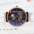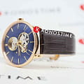Аксессуар в минималистичном исполнении привлекает плавными линиями, отсутствием лишних деталей, эксклюзивным дизайном. Синий циферблат имеет 3 окошка, сквозь которые можно просматривать движение деталей автоматического калибра ETA C07.631 с запасом хода до 80 часов. Прозрачная задняя крышка корпуса. Нержавеющая сталь 316L. Винтажный корпус купольной формы. PVD-покрытиеPVDУльтратонкое покрытие наносится в технике вакуумного напыления, сочетает в себе нитрид титана особой прочности со слоем золота или оксида хрома. Несёт в себе декоративную или защитную функцию.. Стильный ремешок из натуральной кожи с тиснением под крокодиловую кожу. Стекло из сапфира с антибликовым покрытием. Водостойкость 5 бар. Диаметр корпуса: 41 мм.