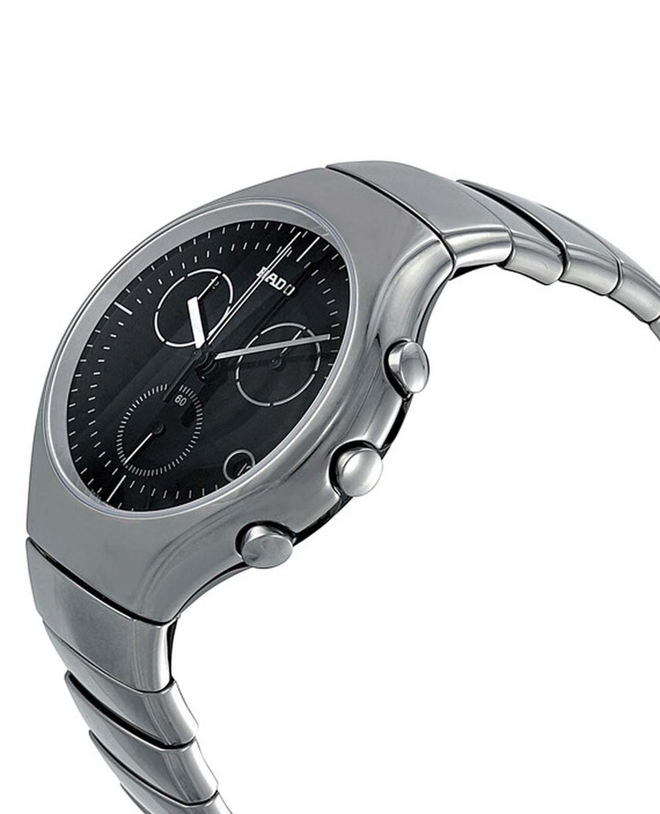 Мужские швейцарские часы-хронографХронографФункция позволяет измерять отрезки времени с особой точностью: часы, минуты, секунды. Верным признаком хронографа является наличие на циферблате 3 дополнительных окошек-счётчиков. Rado True R27896152. Сапфировое стеклоСапфировое стеклоПрочный и надёжный материал из кристалла сапфира синтетического происхождения, характеризующийся особой твёрдостью и устойчивостью к царапинам и повреждениям. устойчивое к мелким механическим повреждениям. Корпус часов изготовлен из высокотехнологичной керамикиВысокотехнологичная керамикаИнновационный запатентованный Rado материал с гладкой или матовой поверхностью. Керамика за счёт кристаллической структуры обладает повышенной устойчивостью от возникновения царапин. Материал способен принимать температуру тела человека, обеспечивая невероятный комфорт при ношении.. Класс водозащиты: 30 метров, позволит защитить корпус от случайных брызг или капель дождя. Браслет из высокотехнологичной керамикиВысокотехнологичная керамикаИнновационный запатентованный Rado материал с гладкой или матовой поверхностью. Керамика за счёт кристаллической структуры обладает повышенной устойчивостью от возникновения царапин. Материал способен принимать температуру тела человека, обеспечивая невероятный комфорт при ношении. на застёжке-бабочке с кнопкамиЗастёжка "бабочка"Такой вид застёжки дополняется предохранителями, помогающими избежать случайного раскрытия браслета. Обладают изящным исполнением. .