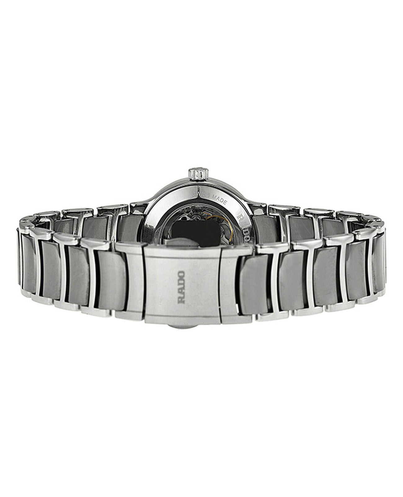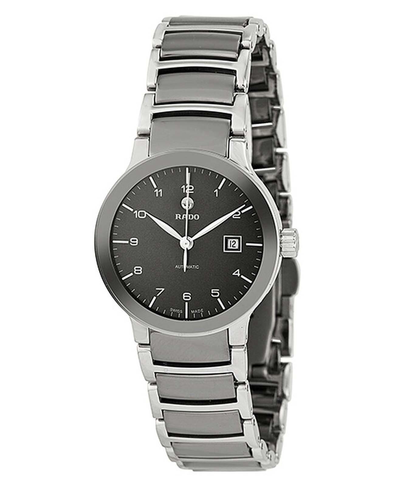 Швейцарские женские механические часы с автоподзаводом Rado Centrix R30940112. Сапфировое стеклоСапфировое стеклоПрочный и надёжный материал из кристалла сапфира синтетического происхождения, характеризующийся особой твёрдостью и устойчивостью к царапинам и повреждениям. устойчивое к появлению царапин, обладающее высокой прозрачностью. Корпус часов изготовлен из нержавеющей стали. Окошко даты находится в положении 3 часа. Класс водозащиты: 30 метров, позволит защитить корпус от случайных брызг или капель дождя. Браслет из высокотехнологичной керамикиВысокотехнологичная керамикаИнновационный запатентованный Rado материал с гладкой или матовой поверхностью. Керамика за счёт кристаллической структуры обладает повышенной устойчивостью от возникновения царапин. Материал способен принимать температуру тела человека, обеспечивая невероятный комфорт при ношении. и нержавеющей стали на раскладной застёжкеРаскладная застёжкаТакой тип застёжки используется только на браслетах из металла. Она никогда не раскрывается полностью, происходит разделение на 2 и более частей. Раскладывающая застёжка снизит вероятность потери часов к минимуму..