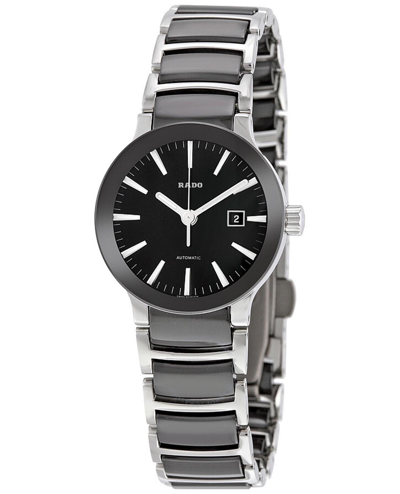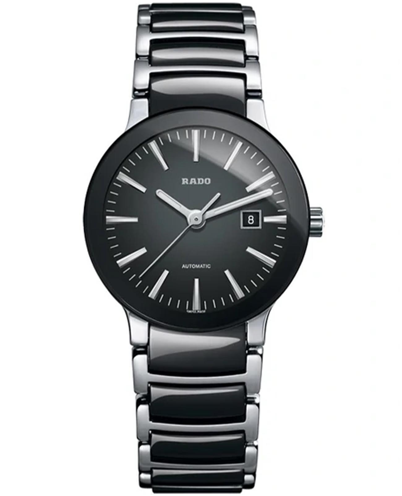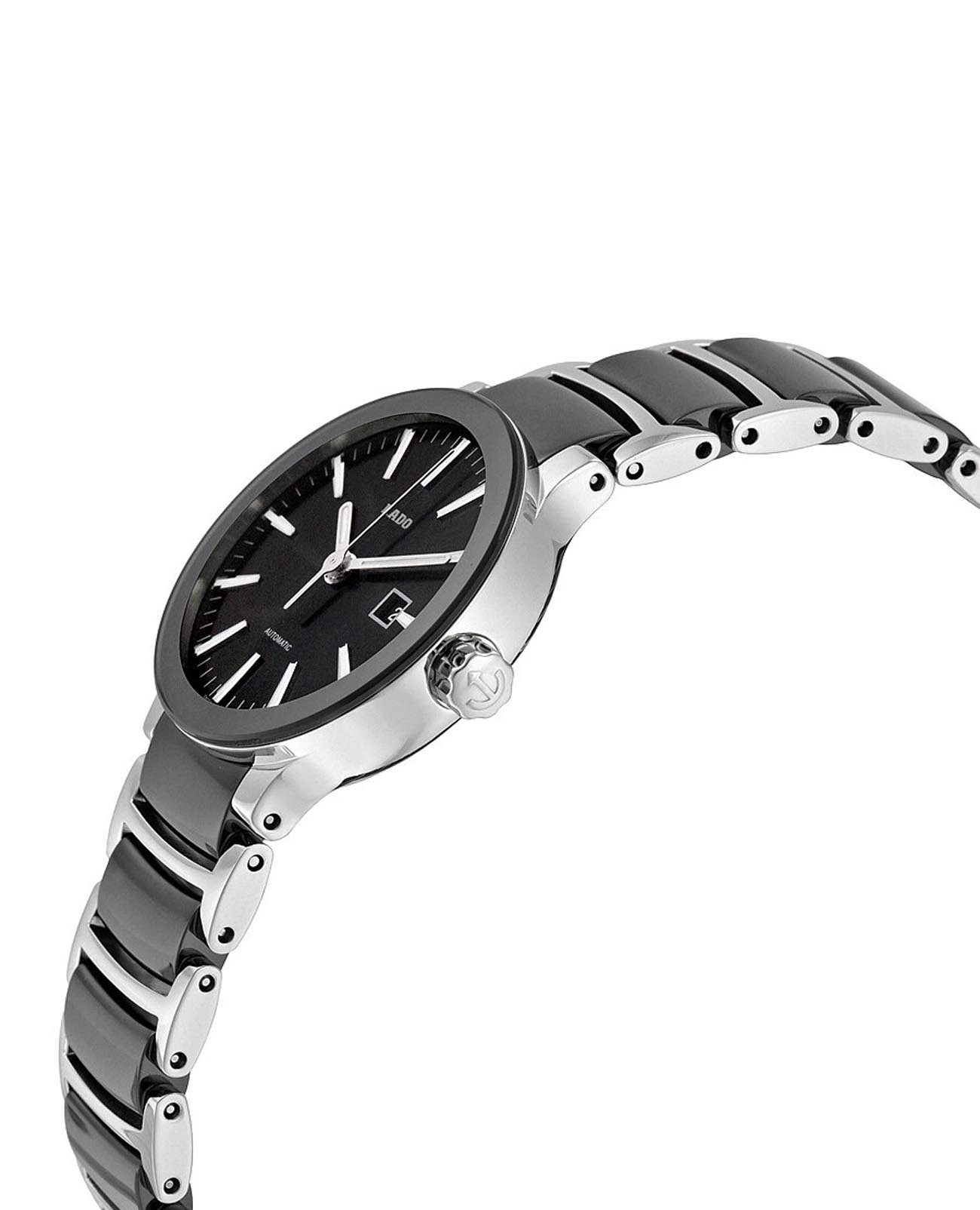 Швейцарские женские механические часы с автоподзаводом Rado Centrix R30942152. Корпус часов изготовлен из нержавеющей стали. Сапфировое стеклоСапфировое стеклоПрочный и надёжный материал из кристалла сапфира синтетического происхождения, характеризующийся особой твёрдостью и устойчивостью к царапинам и повреждениям. устойчивое к мелким механическим повреждениям. Окошко даты находится в положении 3 часа. Стрелки с люминесцентным покрытиемЛюминесцентное покрытиеПозволяет считывать показания времени в темноте. Производители наносят на стрелки, часовые индексы, безель или поверхность циферблата светонакопительный состав, дающий холодное свечение.. Класс водозащиты: 30 метров, позволит защитить корпус от случайных брызг или капель дождя. Браслет из стали и высокотехнологичной керамикиВысокотехнологичная керамикаИнновационный запатентованный Rado материал с гладкой или матовой поверхностью. Керамика за счёт кристаллической структуры обладает повышенной устойчивостью от возникновения царапин. Материал способен принимать температуру тела человека, обеспечивая невероятный комфорт при ношении. на раскладной застёжкеРаскладная застёжкаТакой тип застёжки используется только на браслетах из металла. Она никогда не раскрывается полностью, происходит разделение на 2 и более частей. Раскладывающая застёжка снизит вероятность потери часов к минимуму..