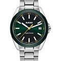 Мужские кварцевые часы Rado HyperChrome — это современное воплощение точности и мастерства материалов. Корпус диаметром 41,5 мм и толщиной 11,7 мм выполнен из полированной и матовой нержавеющей стали. БезельБезельВнешний ободок, закрепляющий стекло. В спортивных часах так называется поворотное кольцо с делениями на циферблате, выполняет роль таймера – замеряет отрезки времени на шкале. Неподвижный безель – элемент декора. Однонаправленно вращающийся безель на дайверских часах позволяет фиксировать моменты погружения и выныривания на поверхность. изготовлен из высокотехнологичной керамикиВысокотехнологичная керамикаИнновационный запатентованный Rado материал с гладкой или матовой поверхностью. Керамика за счёт кристаллической структуры обладает повышенной устойчивостью от возникновения царапин. Материал способен принимать температуру тела человека, обеспечивая невероятный комфорт при ношении. зелёного цвета, придающей часам прочность и изысканность. Циферблат зелёного цвета с лакированным покрытием оформлен индексами и стрелками с люминесцентным покрытиемЛюминесцентное покрытиеПозволяет считывать показания времени в темноте. Производители наносят на стрелки, часовые индексы, безель или поверхность циферблата светонакопительный состав, дающий холодное свечение. Super-Luminova®. Особенность подсветки — зелёное свечение метки 12 часов и минутной стрелки, и синее — остальных индексов и часовой стрелки, что обеспечивает интуитивное считывание времени в темноте. Циферблат защищён выпуклым сапфировым стекломСапфировое стеклоПрочный и надёжный материал из кристалла сапфира синтетического происхождения, характеризующийся особой твёрдостью и устойчивостью к царапинам и повреждениям. с антибликовым покрытиемАнтибликовое покрытиеСлой оксида металла в 0,13-0,3 микрон, благодаря которому стекло часов не бликует и не отражает свет. Антибликовое покрытие уменьшает отражение света в 10 раз, обеспечивая отличную читаемость показателей циферблата. на внутренней стороне. Механизм — кварцевый. Окошко даты расположено в положении 3 часов. Часы оснащены трёхрядным стальным браслетом с центральными звеньями и трёхсекционной застёжкой с системой быстрой регулировки. Водонепроницаемость 150 м позволяет использовать часы для плавания и повседневного ношения. Идеальный выбор для тех, кто ценит инновации, точность и смелый дизайн.