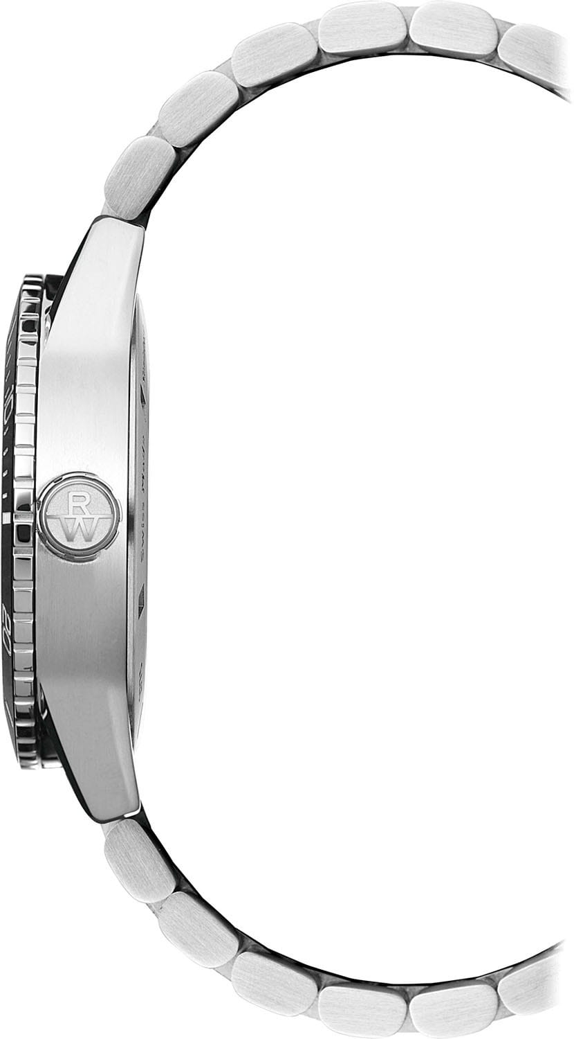 Часы Raymond Weil 2775-ST1-20051 — это воплощение швейцарского мастерства и изысканного стиля, идеально подходящее для тех, кто ценит надежность и элегантность. Эти часы оснащены механизмом с автоподзаводом калибра RW4200, который обеспечивает точность и плавность, а запас хода составляет 38 часов. Корпус выполнен из нержавеющей стали с изысканными керамическими вставками, которые придают дизайну современный и утонченный вид. Черный циферблат защищен сапфировым стекломСапфировое стеклоПрочный и надёжный материал из кристалла сапфира синтетического происхождения, характеризующийся особой твёрдостью и устойчивостью к царапинам и повреждениям. с двусторонним антибликовым покрытиемАнтибликовое покрытиеСлой оксида металла в 0,13-0,3 микрон, благодаря которому стекло часов не бликует и не отражает свет. Антибликовое покрытие уменьшает отражение света в 10 раз, обеспечивая отличную читаемость показателей циферблата., что гарантирует его стойкость к царапинам и высокую прозрачность. Вращающийся в одном направлении керамический безельБезельВнешний ободок, закрепляющий стекло. В спортивных часах так называется поворотное кольцо с делениями на циферблате, выполняет роль таймера – замеряет отрезки времени на шкале. Неподвижный безель – элемент декора. Однонаправленно вращающийся безель на дайверских часах позволяет фиксировать моменты погружения и выныривания на поверхность. подчеркивает их функциональность и стиль. Люминесцентное покрытиеЛюминесцентное покрытиеПозволяет считывать показания времени в темноте. Производители наносят на стрелки, часовые индексы, безель или поверхность циферблата светонакопительный состав, дающий холодное свечение. на стрелках и метках обеспечивает отличную видимость в темноте, а каплевидное окошко даты, расположенное в позиции 6 часов, добавляет практичности. Завинчивающаяся задняя крышка украшена гравировкой водного пейзажа, символизирующего свободу и независимость, что делает эти часы привлекательным выбором для ценителей подводного мира. Часы также оснащены завинчивающейся заводной головкой с монограммой RW и имеют водозащиту до 300 метров, что делает их идеальными для дайвинга. Стальной браслет с раскладной застёжкойРаскладная застёжкаТакой тип застёжки используется только на браслетах из металла. Она никогда не раскрывается полностью, происходит разделение на 2 и более частей. Раскладывающая застёжка снизит вероятность потери часов к минимуму. и гарантирует надежность и удобство при ношении.