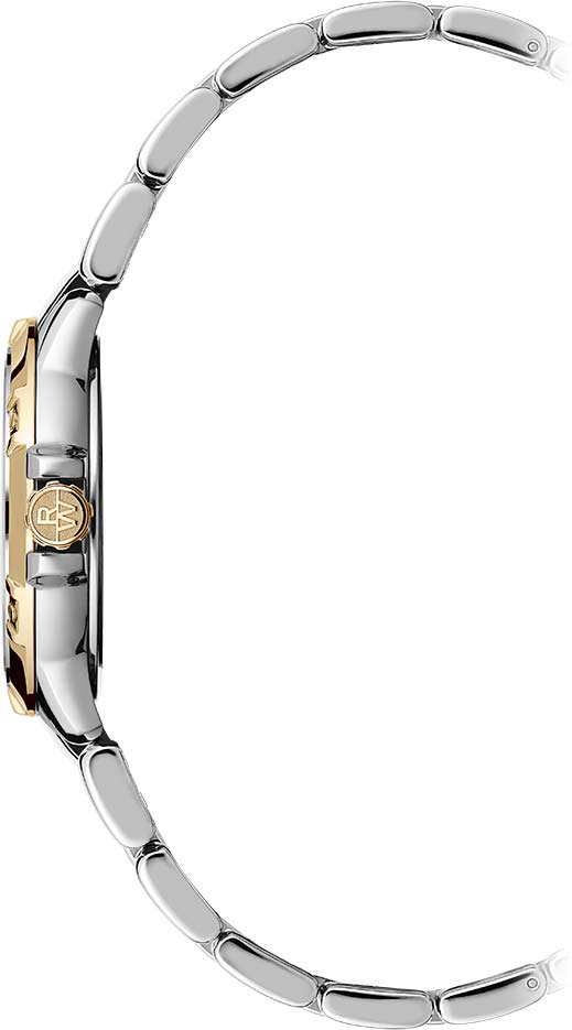 Raymond Weil Tango Classic (артикул 5960-STP-50061) — это женские часы, сочетающие элегантность и практичность. Корпус выполнен из нержавеющей стали и БезельБезельВнешний ободок, закрепляющий стекло. В спортивных часах так называется поворотное кольцо с делениями на циферблате, выполняет роль таймера – замеряет отрезки времени на шкале. Неподвижный безель – элемент декора. Однонаправленно вращающийся безель на дайверских часах позволяет фиксировать моменты погружения и выныривания на поверхность. с жёлтым PVD-покрытиемPVDУльтратонкое покрытие наносится в технике вакуумного напыления, сочетает в себе нитрид титана особой прочности со слоем золота или оксида хрома. Несёт в себе декоративную или защитную функцию., что придаёт часам изысканный двухцветный вид. Циферблат глубокого синего оттенка украшен часовыми метками и стрелками с люминесцентным покрытиемЛюминесцентное покрытиеПозволяет считывать показания времени в темноте. Производители наносят на стрелки, часовые индексы, безель или поверхность циферблата светонакопительный состав, дающий холодное свечение., что обеспечивает удобство чтения времени даже при низкой освещённости. Окошко даты расположено на отметке «3 часа» для дополнительного удобства. Сапфировое стеклоСапфировое стеклоПрочный и надёжный материал из кристалла сапфира синтетического происхождения, характеризующийся особой твёрдостью и устойчивостью к царапинам и повреждениям. с антибликовым покрытиемАнтибликовое покрытиеСлой оксида металла в 0,13-0,3 микрон, благодаря которому стекло часов не бликует и не отражает свет. Антибликовое покрытие уменьшает отражение света в 10 раз, обеспечивая отличную читаемость показателей циферблата. защищает циферблат от царапин, а водонепроницаемость до 100 метров делает часы надёжными для повседневного использования. Точный кварцевый механизм гарантирует стабильную работу. Браслет из нержавеющей стали с жёлтым PVD-покрытиемPVDУльтратонкое покрытие наносится в технике вакуумного напыления, сочетает в себе нитрид титана особой прочности со слоем золота или оксида хрома. Несёт в себе декоративную или защитную функцию. оснащён раскладной застёжкойРаскладная застёжкаТакой тип застёжки используется только на браслетах из металла. Она никогда не раскрывается полностью, происходит разделение на 2 и более частей. Раскладывающая застёжка снизит вероятность потери часов к минимуму. с двойной системой безопасности, обеспечивая комфорт и надёжность при носке.