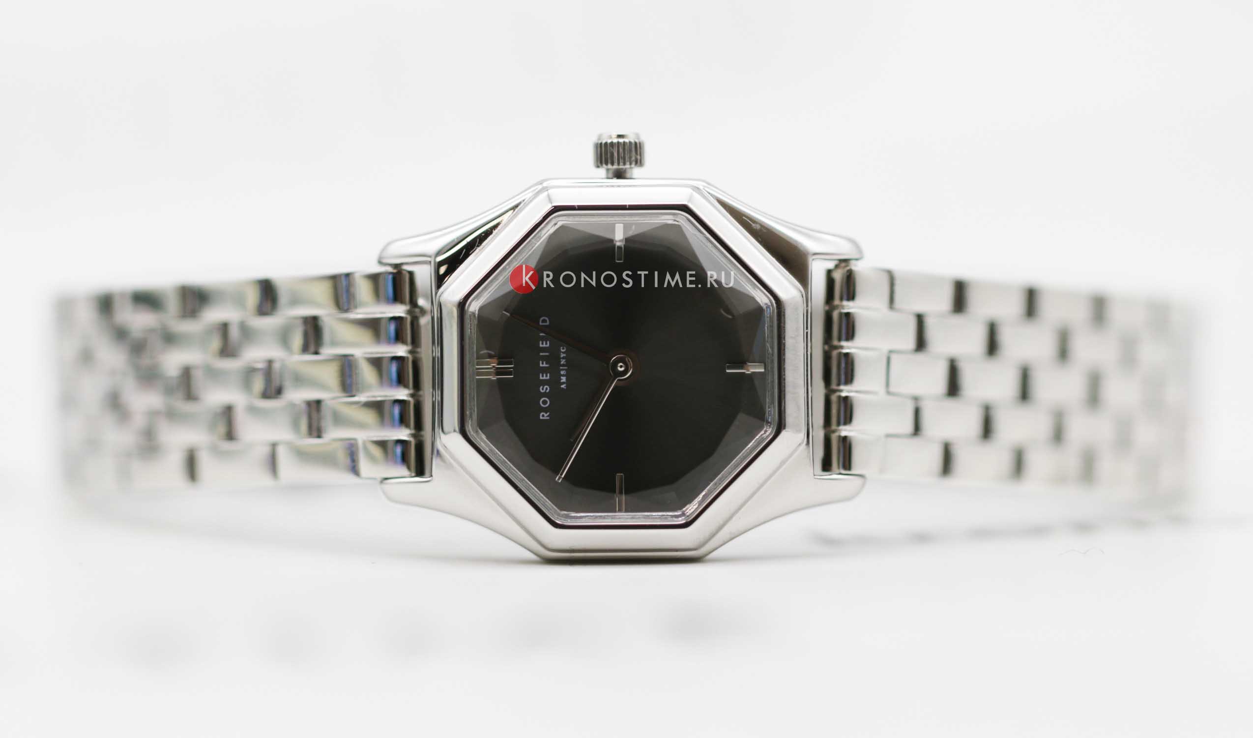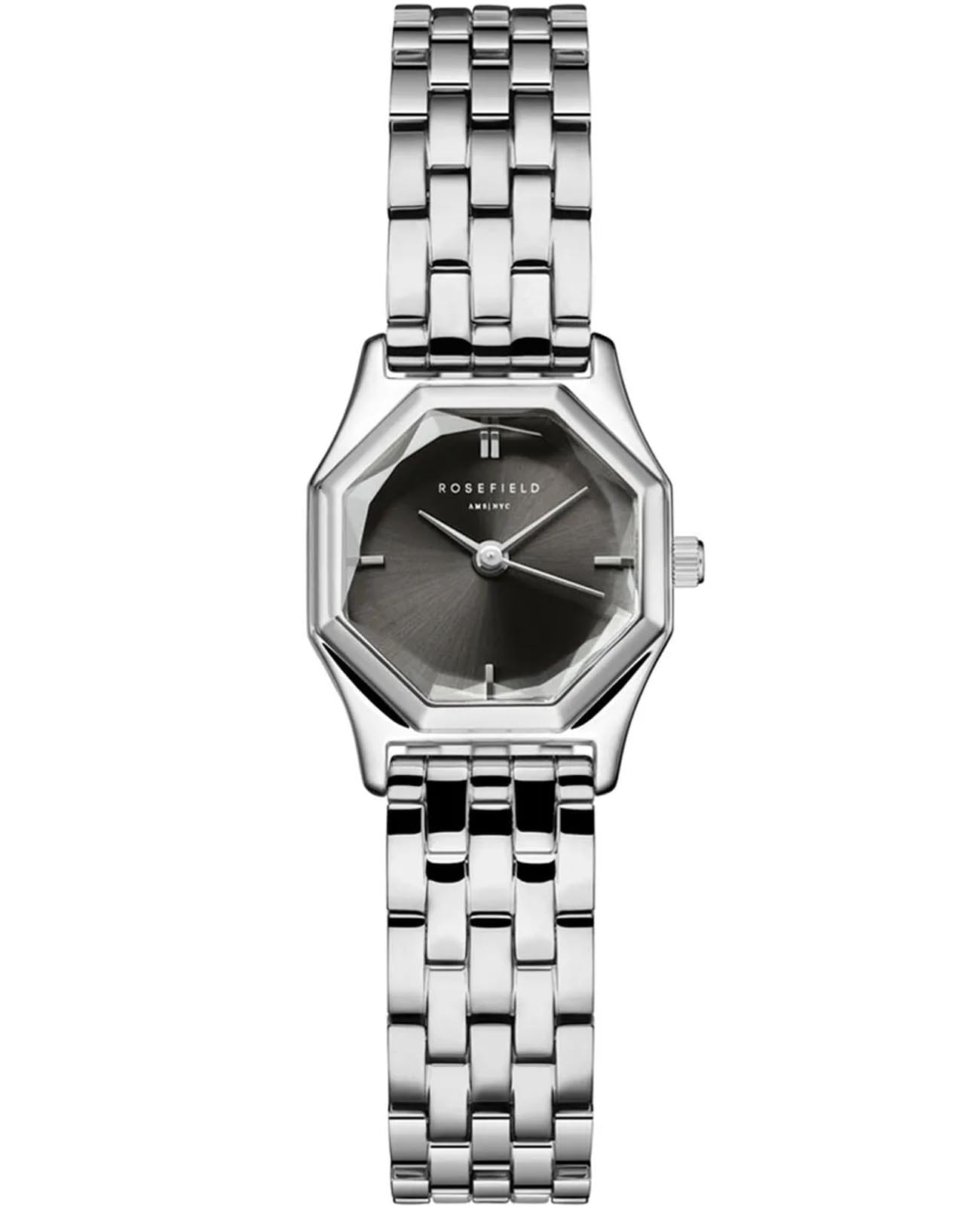 Женские кварцевые часы Rosefield The Gemme GGSSS-G05. Центральные часовая, минутная и секундная стрелки. Восьмиугольный корпус выполнен из полированной нержавеющей стали. Размер корпуса составляет 21,5 х 27,5 мм. Стальной браслет c ювелирной застежкой. Прочное минеральное стеклоМинеральное стеклоМинеральное стекло представляет собой искусственно выращенный минерал кварца. Такое стекло отличается особой устойчивостью к повреждениям и царапинам. Уступает по некоторым качествам сапфировому стеклу. устойчивое к мелким механическим повреждениям. Класс водозащиты: 30 метров, позволит защитить корпус от случайных брызг или капель дождя.