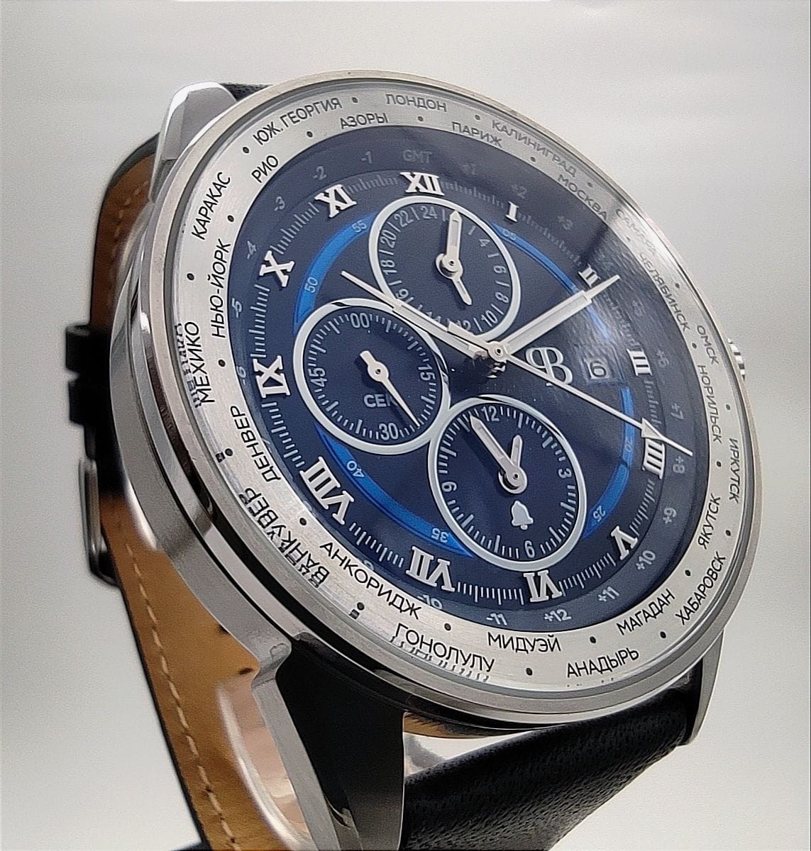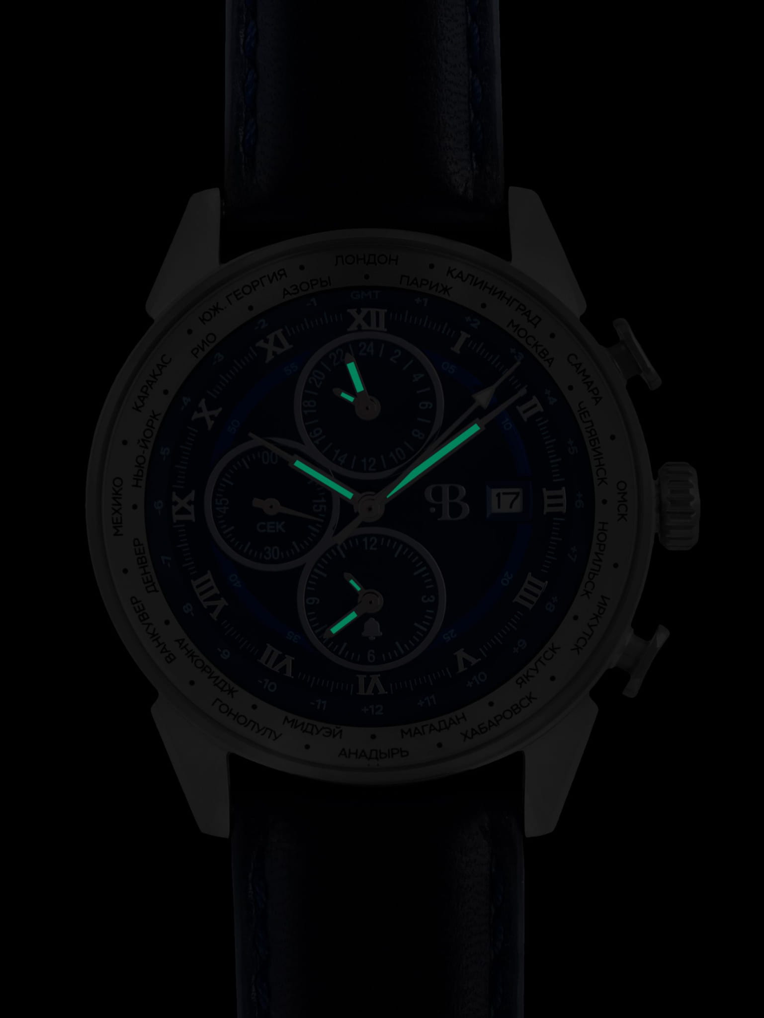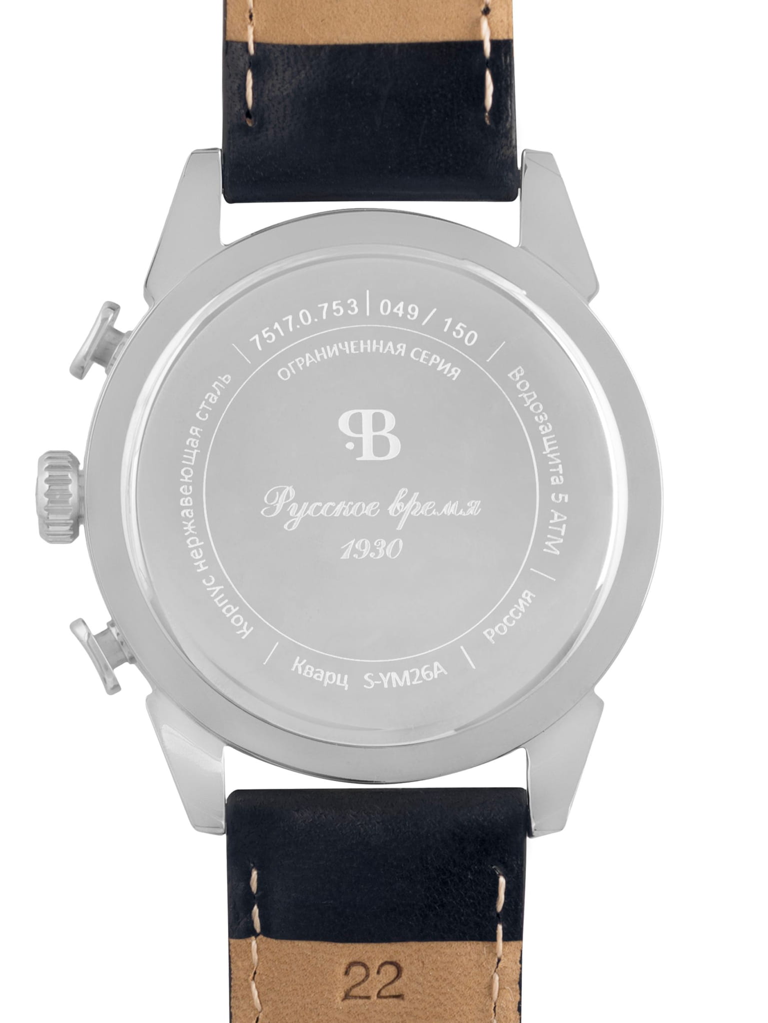 Российские часы Русское время c хронографомХронографФункция позволяет измерять отрезки времени с особой точностью: часы, минуты, секунды. Верным признаком хронографа является наличие на циферблате 3 дополнительных окошек-счётчиков. 75170753 оснащены кварцевый механизм, что обеспечивает исключительную надежность и точность хода. Корпус часов выполнен из стали, что придает ему долговечность и устойчивость к внешним воздействиям Минеральное стеклоМинеральное стеклоМинеральное стекло представляет собой искусственно выращенный минерал кварца. Такое стекло отличается особой устойчивостью к повреждениям и царапинам. Уступает по некоторым качествам сапфировому стеклу. устойчиво к мелким механическим повреждениям, что гарантирует долговечность и сохранение первоначального вида. Класс водозащиты часов составляет 50 метров, что позволяет защитить корпус от случайных брызг и капель дождя.Кожаный ремешок на стандартной застежке. Эти часы идеально подойдут для повседневного использования, сочетая в себе стиль, надежность и функциональность. Лимитированная серия.