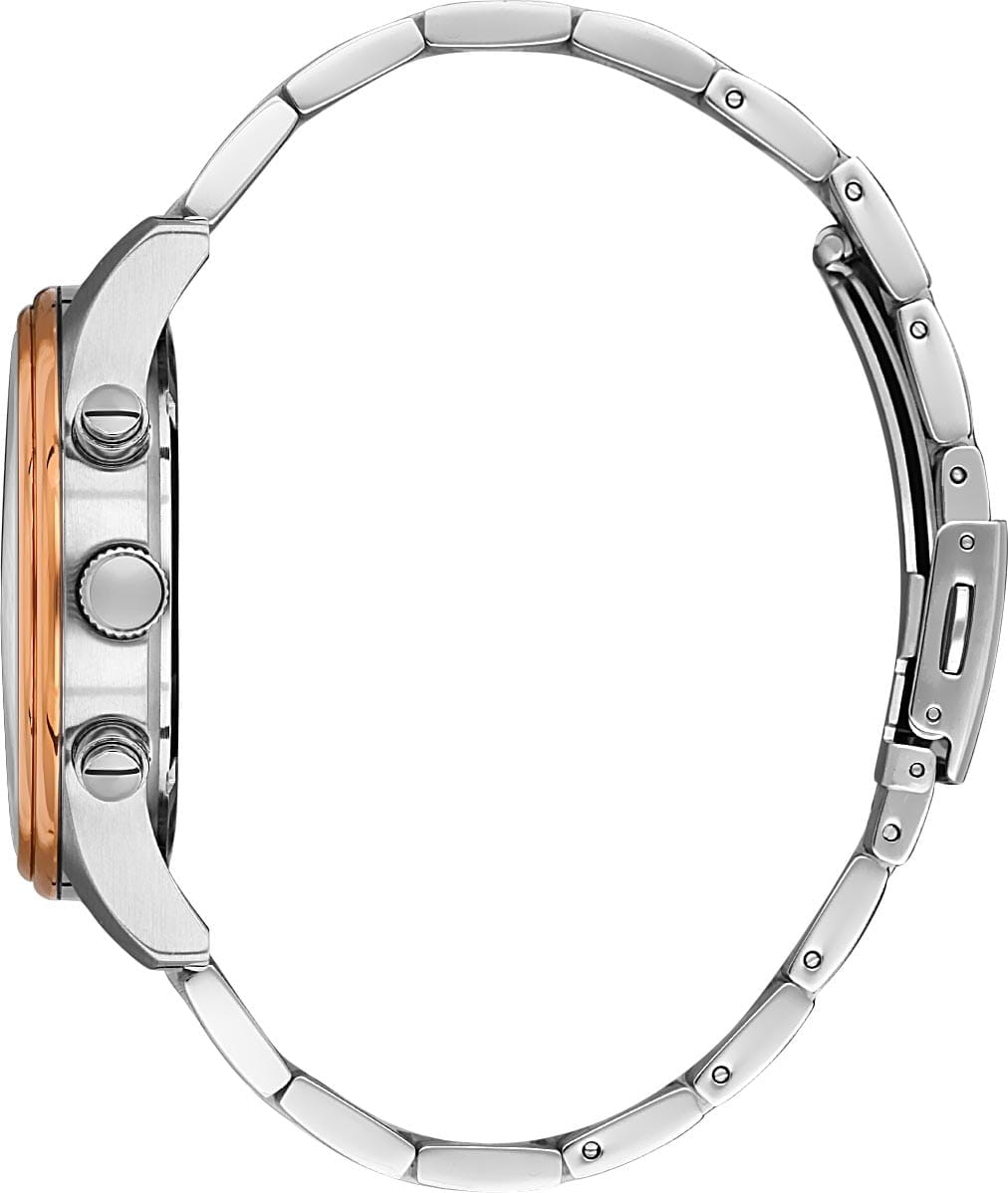 Мужские кварцевые часы Santa Barbara Polo & Racquet Club — это стильный и функциональный аксессуар для уверенного в себе мужчины. Корпус диаметром 43 мм и высотой 51,5 мм выполнен из нержавеющей стали, безель с IP-покрытиемIP-покрытиеМетод ионного напыления. Демонстрирует повышенную устойчивость к истиранию, окислению и химическим веществам. Под воздействием высокого давления и температуры около 1500°C молекулы металла надёжно соединяются с частицами корпуса часов. розового золота. Циферблат коричневого цвета оформлен по технологии Sunray («солнечные лучи»), дополнен накладными метками в виде штрихов и фирменным логотипом. Указатели дня недели и даты вынесены на отдельные субциферблаты, также присутствует индикация 24-часового формата времени. Стрелки с люминесцентным покрытиемЛюминесцентное покрытиеПозволяет считывать показания времени в темноте. Производители наносят на стрелки, часовые индексы, безель или поверхность циферблата светонакопительный состав, дающий холодное свечение., обеспечивающим хорошую читаемость в темноте. Циферблат защищён минеральным стекломМинеральное стеклоМинеральное стекло представляет собой искусственно выращенный минерал кварца. Такое стекло отличается особой устойчивостью к повреждениям и царапинам. Уступает по некоторым качествам сапфировому стеклу.. Механизм — кварцевый. Часы оснащены стальным браслетом с раскладной застёжкойРаскладная застёжкаТакой тип застёжки используется только на браслетах из металла. Она никогда не раскрывается полностью, происходит разделение на 2 и более частей. Раскладывающая застёжка снизит вероятность потери часов к минимуму.. Водонепроницаемость 50 м позволяет использовать часы в повседневных условиях. Идеальный выбор для тех, кто ценит стиль, точность и надёжность.