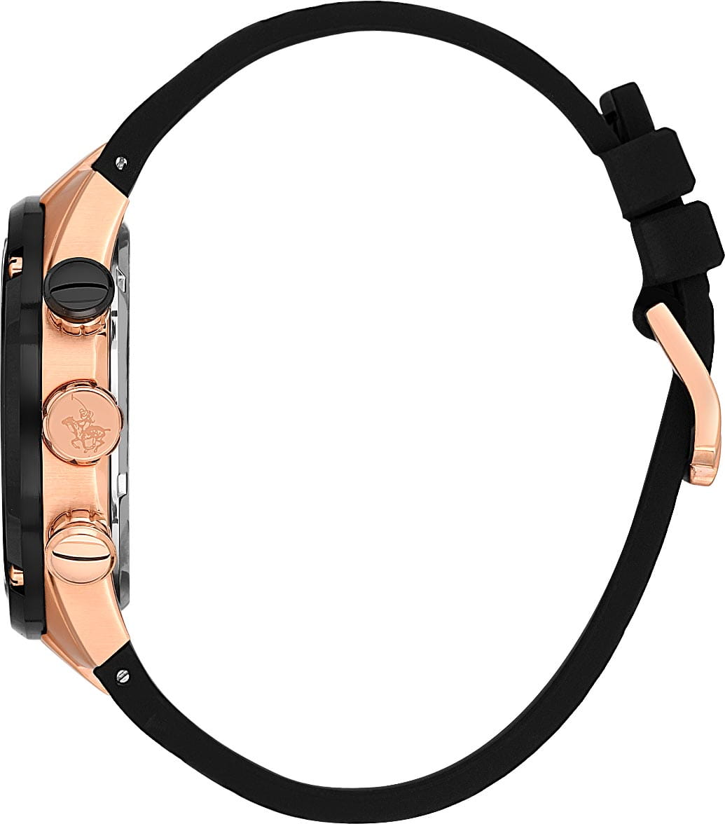 Мужские кварцевые часы-хронографХронографФункция позволяет измерять отрезки времени с особой точностью: часы, минуты, секунды. Верным признаком хронографа является наличие на циферблате 3 дополнительных окошек-счётчиков. с секундомеромСекундомерСекундоме́р — прибор, способный измерять интервалы времени с точностью до долей секунды. Santa Barbara Polo & Racquet Club SB.3.10001-1 — воплощение элегантности и технического совершенства. Корпус из нержавеющей стали с IP-покрытиемIP-покрытиеМетод ионного напыления. Демонстрирует повышенную устойчивость к истиранию, окислению и химическим веществам. Под воздействием высокого давления и температуры около 1500°C молекулы металла надёжно соединяются с частицами корпуса часов. цвета розового золота, диаметром 45 мм, что делает их устойчивыми к внешним воздействиям и придает благородный вид. Стрелки и метки с люминесцентным покрытиемЛюминесцентное покрытиеПозволяет считывать показания времени в темноте. Производители наносят на стрелки, часовые индексы, безель или поверхность циферблата светонакопительный состав, дающий холодное свечение., обеспечивающим хорошую читаемость в темноте. Неподвижный безельБезельВнешний ободок, закрепляющий стекло. В спортивных часах так называется поворотное кольцо с делениями на циферблате, выполняет роль таймера – замеряет отрезки времени на шкале. Неподвижный безель – элемент декора. Однонаправленно вращающийся безель на дайверских часах позволяет фиксировать моменты погружения и выныривания на поверхность. с IP-покрытиемIP-покрытиеМетод ионного напыления. Демонстрирует повышенную устойчивость к истиранию, окислению и химическим веществам. Под воздействием высокого давления и температуры около 1500°C молекулы металла надёжно соединяются с частицами корпуса часов. черного цвета. Циферблат защищён минеральным стекломМинеральное стеклоМинеральное стекло представляет собой искусственно выращенный минерал кварца. Такое стекло отличается особой устойчивостью к повреждениям и царапинам. Уступает по некоторым качествам сапфировому стеклу. устойчивое к царапинам и механическим повреждениям. Окошко даты находится в положении 4 часа, тахиметрТахиметрРазмеченная шкала, располагается на ободке или безеле часов. Тахиметр позволяет рассчитать скорость на определённом участке пути, расстояние измеряется в километрах или милях. по внешнему краю. Кожаный ремешок на стандартной застёжке обеспечивает комфортное и безопасное ношение. Водонепроницаемость 100 метров позволит плавать, нырять и заниматься другими водными видами спорта. Идеальный выбор для тех, кто ценит элегантный дизайн и качество.