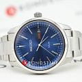 Seiko SNE525P1 — стильные мужские часы из коллекции Conceptual Series Dress, выполненные в универсальном классическом дизайне с современным акцентом. Корпус диаметром 41 мм изготовлен из нержавеющей стали с аккуратной сатинированной отделкой, а прочный браслет из того же материала дополнен раскладной застёжкойРаскладная застёжкаТакой тип застёжки используется только на браслетах из металла. Она никогда не раскрывается полностью, происходит разделение на 2 и более частей. Раскладывающая застёжка снизит вероятность потери часов к минимуму., обеспечивающей комфортное и надёжное ношение. В качестве защитного элемента используется минеральное стеклоМинеральное стеклоМинеральное стекло представляет собой искусственно выращенный минерал кварца. Такое стекло отличается особой устойчивостью к повреждениям и царапинам. Уступает по некоторым качествам сапфировому стеклу. Hardlex, обладающее повышенной устойчивостью к повреждениям. Модель оснащена солнечным модулем Tough SolarTough SolarТехнология основана на подзарядке аккумулятора от источника солнечного света, специальная панель улавливает солнечные лучи и преобразует их в энергию для работы часов. Достаточно пары минут нахождения на солнце для функционирования часов в течении суток., аккумулирующим энергию света и обеспечивающим длительную автономную работу без замены батарейки. Циферблат глубокого синего цвета подчёркивает деловой стиль часов и дополнен индикатором даты и дня недели на «3 часах». Тонкие стрелки и метки покрыты люминесцентным покрытиемЛюминесцентное покрытиеПозволяет считывать показания времени в темноте. Производители наносят на стрелки, часовые индексы, безель или поверхность циферблата светонакопительный состав, дающий холодное свечение., что делает показания легко читаемыми даже при слабом освещении. Водозащита до 100 метров позволяет использовать часы в повседневных условиях и при кратковременном контакте с водой.