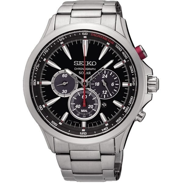 Успешные люди, желающие идти в ногу со временем, выбирают инновационные и надежные часы марки Seiko. Механизм работает от солнечной батареи, калибр V175. Корпус и браслет выполнены из нержавеющей стали с антикоррозийными свойствами. Черный циферблат с контрастными элементами дизайна. Минеральное стекло повышенной прочности Hardlex, устойчиво к царапинам. Водонепрницаемость 100м. Часы оснащены хронографом.