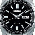 Модель Seiko SARV003 — это классические автоматические часы с глубоким чёрным циферблатом и строгим стилем исполнения. Корпус диаметром 42 мм изготовлен из нержавеющей стали с комбинированной полировкой, задняя крышка прозрачная, завинчивающаяся. Водозащита до 100 метров делает модель подходящей для повседневного ношения. Фиксированный стальной безельБезельВнешний ободок, закрепляющий стекло. В спортивных часах так называется поворотное кольцо с делениями на циферблате, выполняет роль таймера – замеряет отрезки времени на шкале. Неподвижный безель – элемент декора. Однонаправленно вращающийся безель на дайверских часах позволяет фиксировать моменты погружения и выныривания на поверхность. подчеркивает сдержанный внешний вид. Чёрный циферблат оформлен серебристыми стрелками и метками, которые покрыты люминесцентным покрытиемЛюминесцентное покрытиеПозволяет считывать показания времени в темноте. Производители наносят на стрелки, часовые индексы, безель или поверхность циферблата светонакопительный состав, дающий холодное свечение. LumiBrite для удобной читаемости в тёмное время суток. На отметке 3 часа — двойное окошко даты и дня недели (на английском и японском языках). Циферблат защищён прочным минеральным стекломМинеральное стеклоМинеральное стекло представляет собой искусственно выращенный минерал кварца. Такое стекло отличается особой устойчивостью к повреждениям и царапинам. Уступает по некоторым качествам сапфировому стеклу. Hardlex, устойчивым к царапинам. Внутри установлен автоматический механизм Seiko 4R36 с функцией ручного подзавода, остановкой секундной стрелки и запасом хода до 41 часа. Браслет из нержавеющей стали оснащён надёжной раскладной застёжкойРаскладная застёжкаТакой тип застёжки используется только на браслетах из металла. Она никогда не раскрывается полностью, происходит разделение на 2 и более частей. Раскладывающая застёжка снизит вероятность потери часов к минимуму. с кнопками, обеспечивающей комфортную посадку на запястье. Seiko SARV003 — это надёжный повседневный аксессуар, сочетающий строгость, практичность и японское качество в узнаваемом классическом стиле.