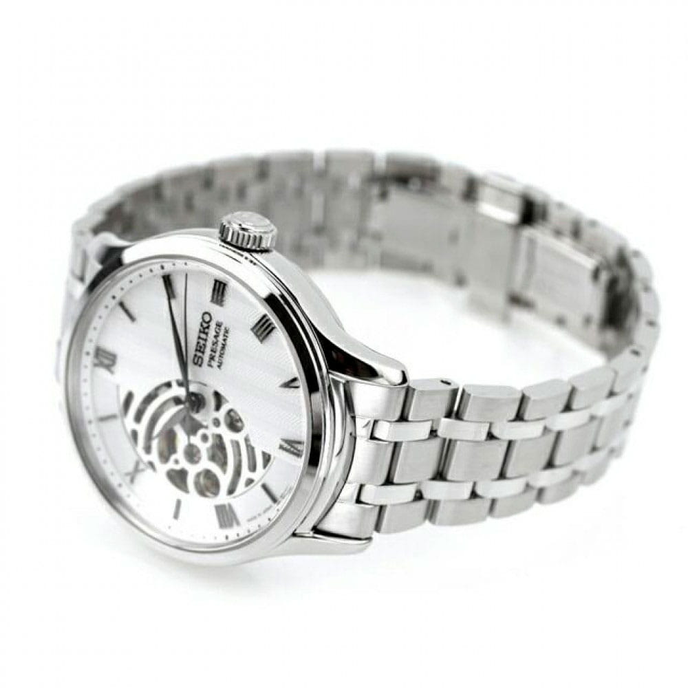 Модель Seiko SARY251 из коллекции Presage — это утончённые автоматические часы, вдохновлённые эстетикой японского сада и классическим часовым искусством. Корпус диаметром 41,8 мм выполнен из нержавеющей стали с зеркальной полировкой и оснащён прозрачной задней крышкой. Водозащита составляет 30 метров — надёжно для повседневного ношения. Фиксированный безельБезельВнешний ободок, закрепляющий стекло. В спортивных часах так называется поворотное кольцо с делениями на циферблате, выполняет роль таймера – замеряет отрезки времени на шкале. Неподвижный безель – элемент декора. Однонаправленно вращающийся безель на дайверских часах позволяет фиксировать моменты погружения и выныривания на поверхность. из стали подчёркивает изящные линии корпуса. Главный акцент — серебристый циферблат с текстурой, напоминающей гравий в японском саду. Открытое окно «open heart» на 9 часах позволяет наблюдать за работой баланса. Циферблат защищён выпуклым сапфировым стекломСапфировое стеклоПрочный и надёжный материал из кристалла сапфира синтетического происхождения, характеризующийся особой твёрдостью и устойчивостью к царапинам и повреждениям., устойчивым к царапинам. Внутри установлен автоматический механизм Seiko 4R71 с функцией ручного подзавода, остановкой секундной стрелки и запасом хода около 41 часа. Браслет из нержавеющей стали с 5-звеньевой конструкцией снабжён надёжной застёжкой «бабочка» с кнопкамиЗастёжка "бабочка"Такой вид застёжки дополняется предохранителями, помогающими избежать случайного раскрытия браслета. Обладают изящным исполнением. . Seiko SARY251 — это гармоничное сочетание японского эстетизма, классического дизайна и механической надёжности в стильных повседневных часах.