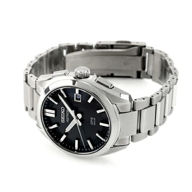 Мужские кварцевые часы Seiko — это высокотехнологичный аксессуар с солнечным питанием и GPS-синхронизацией. Корпус диаметром 41 мм и толщиной 13 мм выполнен из лёгкого титана. Циферблат чёрного цвета оформлен индексами и стрелками. Окошко даты расположено в положении 3 часов. Стрелки и метки с люминесцентным покрытиемЛюминесцентное покрытиеПозволяет считывать показания времени в темноте. Производители наносят на стрелки, часовые индексы, безель или поверхность циферблата светонакопительный состав, дающий холодное свечение., обеспечивающим хорошую читаемость в темноте. Циферблат защищён сапфировым стекломСапфировое стеклоПрочный и надёжный материал из кристалла сапфира синтетического происхождения, характеризующийся особой твёрдостью и устойчивостью к царапинам и повреждениям.. Механизм — кварцевый с технологией Tough SolarTough SolarТехнология основана на подзарядке аккумулятора от источника солнечного света, специальная панель улавливает солнечные лучи и преобразует их в энергию для работы часов. Достаточно пары минут нахождения на солнце для функционирования часов в течении суток., обеспечивающей автономную работу до 6 месяцев при полной зарядке (до 2 лет в режиме энергосбережения). Часы поддерживают автоматическую коррекцию времени и часового пояса через GPS, имеют вечный календарьВечный календарьКлассическое часовое усложнение, представляющее собой календарь, рассчитанный на несколько лет вперёд (стандартно – до 2099 года). Определяет текущую дату, день недели, месяц. (до 28 февраля 2100 года) и функцию авиарежима. Часы оснащены титановым браслетом с раскладной застёжкойРаскладная застёжкаТакой тип застёжки используется только на браслетах из металла. Она никогда не раскрывается полностью, происходит разделение на 2 и более частей. Раскладывающая застёжка снизит вероятность потери часов к минимуму.. Водонепроницаемость 100 м позволяет использовать часы для плавания и повседневного ношения. Идеальный выбор для тех, кто ценит точность, инновации и надёжность.