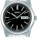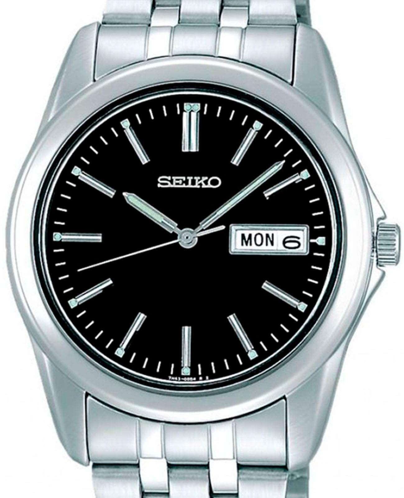 Мужские кварцевые часы Seiko — это элегантный аксессуар в классическом стиле. Корпус размером 38×38 мм и толщиной 8 мм выполнен из нержавеющей стали. Циферблат серебристого цвета оформлен индексами и стрелками. Указатели дня недели и даты вынесены на отдельные субциферблаты. Стрелки и метки с люминесцентным покрытиемЛюминесцентное покрытиеПозволяет считывать показания времени в темноте. Производители наносят на стрелки, часовые индексы, безель или поверхность циферблата светонакопительный состав, дающий холодное свечение., обеспечивающим хорошую читаемость в темноте. Циферблат защищён прочным защищён минеральным стекломМинеральное стеклоМинеральное стекло представляет собой искусственно выращенный минерал кварца. Такое стекло отличается особой устойчивостью к повреждениям и царапинам. Уступает по некоторым качествам сапфировому стеклу. от компании Seiko. Часы оснащены стальным браслетом с раскладной застёжкойРаскладная застёжкаТакой тип застёжки используется только на браслетах из металла. Она никогда не раскрывается полностью, происходит разделение на 2 и более частей. Раскладывающая застёжка снизит вероятность потери часов к минимуму.. Водонепроницаемость 30 м позволяет использовать часы в повседневных условиях. Идеальный выбор для тех, кто ценит японское качество и лаконичный дизайн.