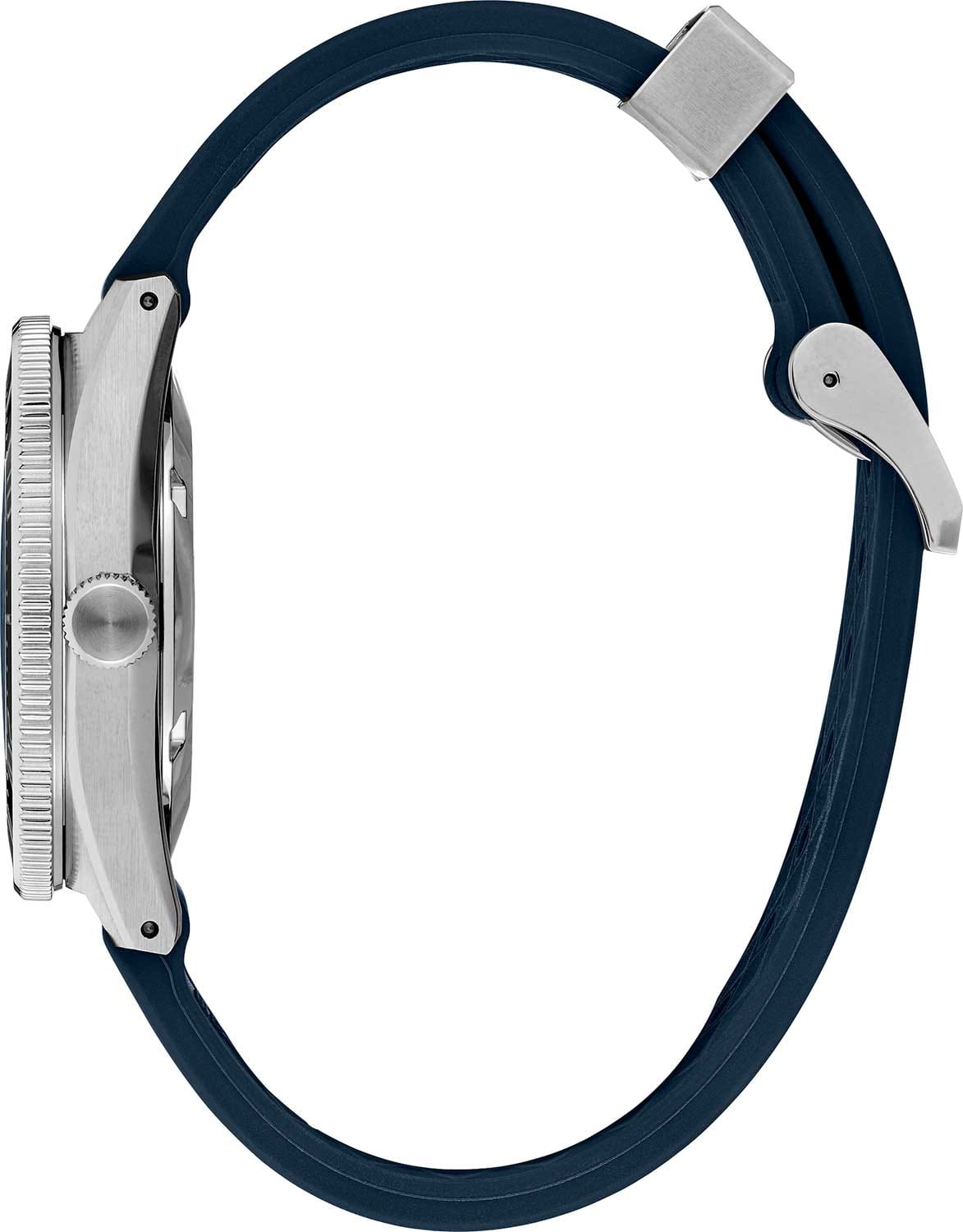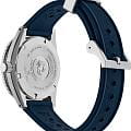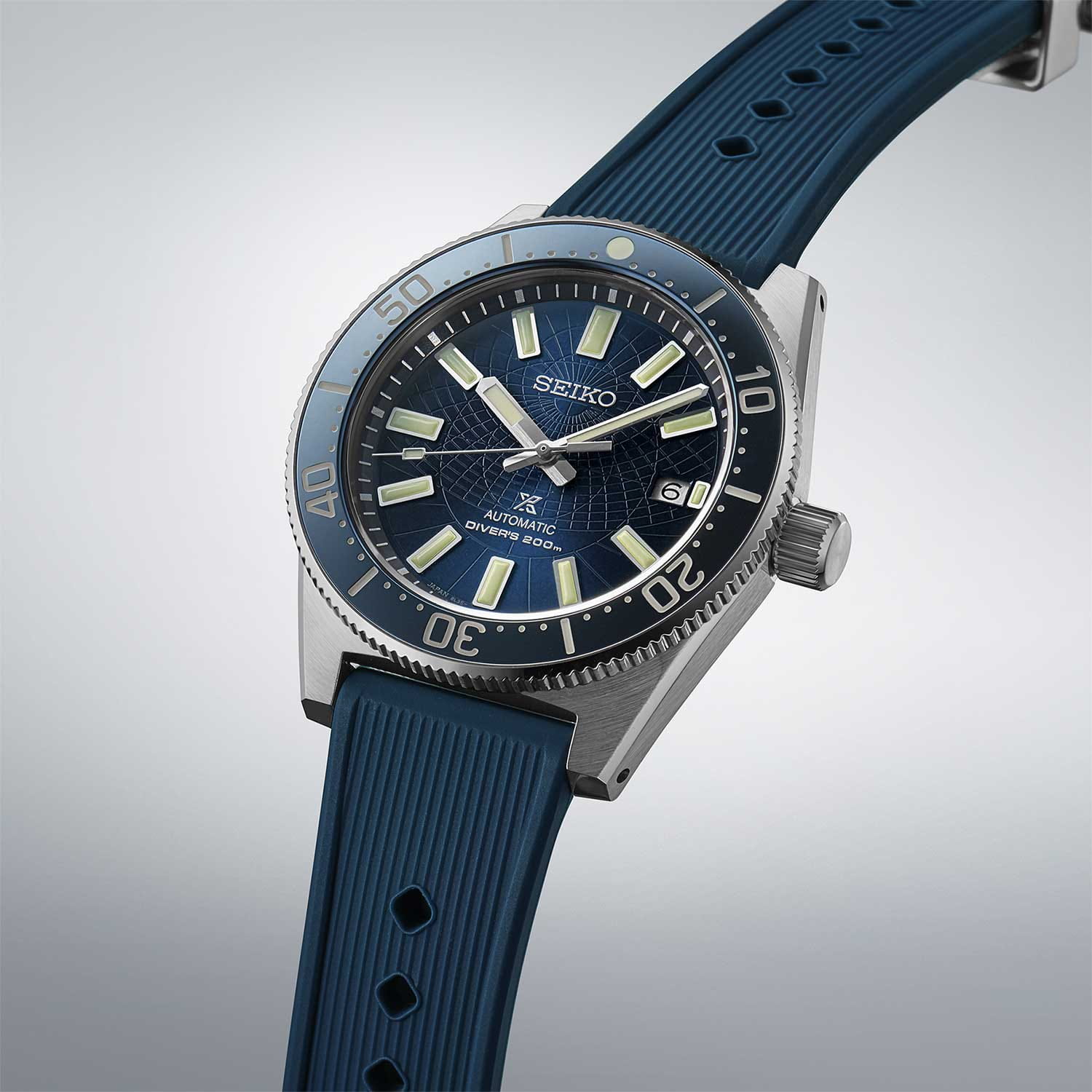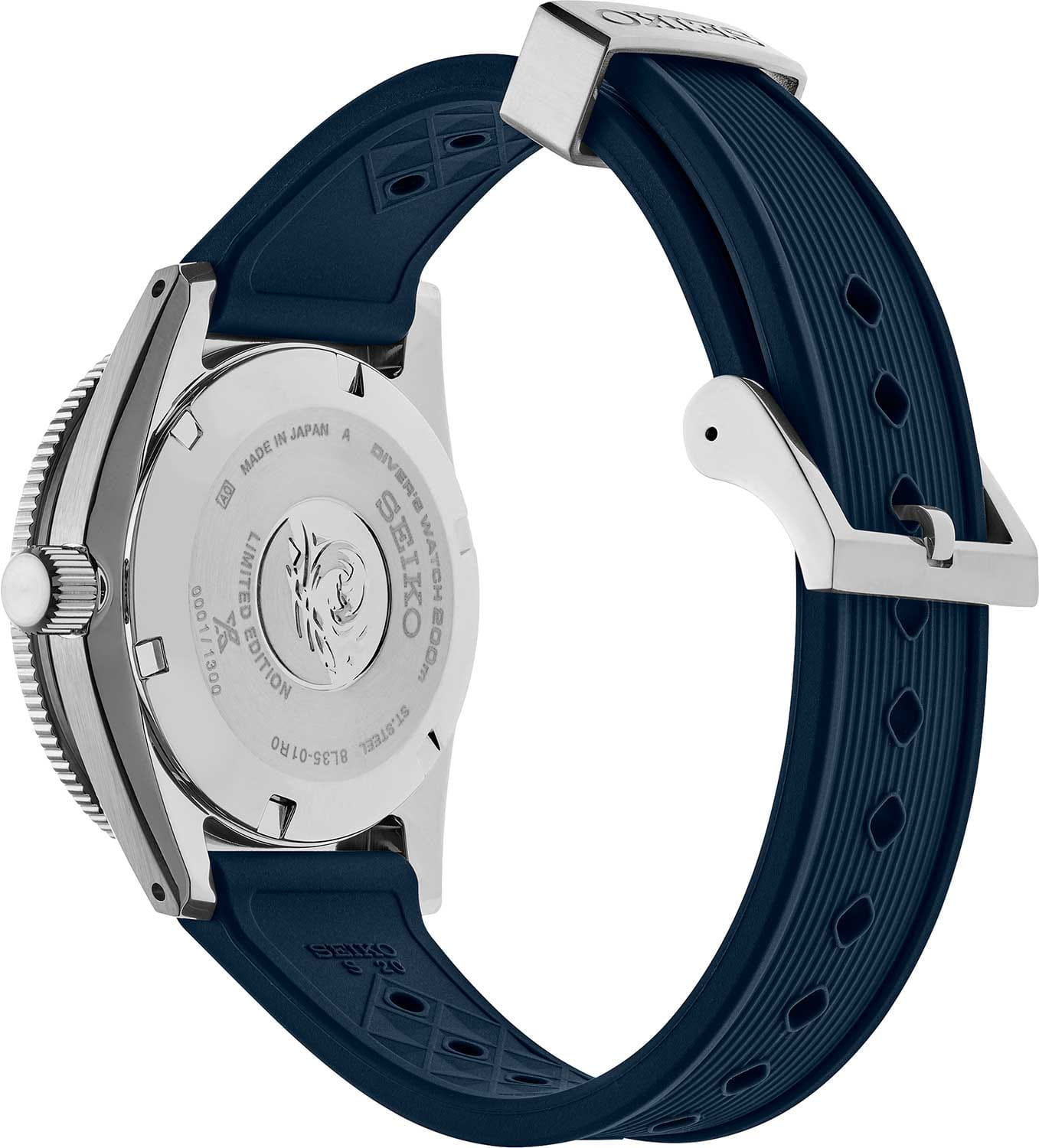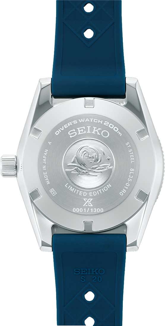 Мужские механические часы с автоподзаводом Seiko из коллекции Prospex — это современная интерпретация легендарных дайверских часов 1965 года, выпущенная ограниченной серией — всего 1300 экземпляров. Корпус диаметром 41 мм и толщиной 13 мм выполнен из стали. Циферблат синего цвета оформлен по технологии Sunray («солнечные лучи»), дополнен штрихами и логотипом бренда. Окошко даты расположено в положении 3 часов. Стрелки и метки с люминесцентным покрытиемЛюминесцентное покрытиеПозволяет считывать показания времени в темноте. Производители наносят на стрелки, часовые индексы, безель или поверхность циферблата светонакопительный состав, дающий холодное свечение. LumiBrite, обеспечивающим высокую читаемость в темноте. Циферблат защищён выпуклым с двух сторон сапфировым стекломСапфировое стеклоПрочный и надёжный материал из кристалла сапфира синтетического происхождения, характеризующийся особой твёрдостью и устойчивостью к царапинам и повреждениям. с антибликовым покрытиемАнтибликовое покрытиеСлой оксида металла в 0,13-0,3 микрон, благодаря которому стекло часов не бликует и не отражает свет. Антибликовое покрытие уменьшает отражение света в 10 раз, обеспечивая отличную читаемость показателей циферблата. на внутренней поверхности. Механизм — автоматический калибр 8L35 (26 камней, частота 28 800 полуколебаний в час, запас хода до 50 часов) с возможностью ручного завода, функцией и защитой от магнитных полей до 4800 А/мУдаропрочный корпусМеханизм заключён в корпус, выполненный из современных материалов, устойчивых к ударам, механическим повреждениям и падению с высоты: инновационный пластик, карбон, нержавеющая сталь, титан.. БезельБезельВнешний ободок, закрепляющий стекло. В спортивных часах так называется поворотное кольцо с делениями на циферблате, выполняет роль таймера – замеряет отрезки времени на шкале. Неподвижный безель – элемент декора. Однонаправленно вращающийся безель на дайверских часах позволяет фиксировать моменты погружения и выныривания на поверхность. — однонаправленный, вращающийся, с рифлёной поверхностью с PVD-покрытиемPVDУльтратонкое покрытие наносится в технике вакуумного напыления, сочетает в себе нитрид титана особой прочности со слоем золота или оксида хрома. Несёт в себе декоративную или защитную функцию.. Завинчивающаяся задняя крышка и заводная головка повышают надёжность. Часы оснащены силиконовым ремешком с классической пряжкой. Водонепроницаемость 200 м позволяет использовать часы для профессионального плавания и дайвинга. Идеальный выбор для тех, кто ценит историю, экологические инициативы, мощный дизайн и японское качество.
