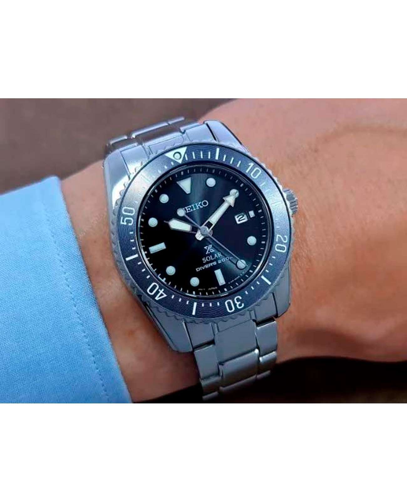Мужские наручные часы Seiko Prospex SNE569P1 из коллекции Prospex сочетают в себе спортивный дизайн и надежность современных технологий. Модель обладает круглым корпусом диаметром 38,5 мм, изготовленным из нержавеющей стали, что обеспечивает высокую устойчивость к внешним воздействиям . Защита циферблата выполнена с использованием сапфирового стеклаСапфировое стеклоПрочный и надёжный материал из кристалла сапфира синтетического происхождения, характеризующийся особой твёрдостью и устойчивостью к царапинам и повреждениям., устойчивого к появлению царапин и обладающего высокой прозрачностью . БезельБезельВнешний ободок, закрепляющий стекло. В спортивных часах так называется поворотное кольцо с делениями на циферблате, выполняет роль таймера – замеряет отрезки времени на шкале. Неподвижный безель – элемент декора. Однонаправленно вращающийся безель на дайверских часах позволяет фиксировать моменты погружения и выныривания на поверхность. с PVD-покрытиемPVDУльтратонкое покрытие наносится в технике вакуумного напыления, сочетает в себе нитрид титана особой прочности со слоем золота или оксида хрома. Несёт в себе декоративную или защитную функцию.. Часы оснащены системой Solar, которая не требует замены батарейки и обеспечивает запас хода до 10 месяцев при полной зарядке аккумулятора. Кварцевый механизм с калибром V147 гарантирует высокую точность работы, а функция EOLEOLПредставляет собой систему, уведомляющую владельца часов о необходимости замены элемента питания. За 2 недели до полного разряда батарейки секундная стрелка перестаёт ходить чётко и начинает перепрыгивать на 3-4 деления. позволяет контролировать уровень заряда аккумулятора . Циферблат серого цвета дополнен люминесцентным покрытиемЛюминесцентное покрытиеПозволяет считывать показания времени в темноте. Производители наносят на стрелки, часовые индексы, безель или поверхность циферблата светонакопительный состав, дающий холодное свечение., обеспечивающим видимость в темное время суток . Водонепроницаемость модели достигает 200 метров, что делает ее подходящей для плавания, ныряния и других водных видов спорта .