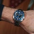 Мужские механические часы с автоподзаводом Seiko — это спортивный аксессуар из коллекции Prospex, выпущенный ограниченной серией в честь 55-летия легендарных дайверских часов Seiko — всего 5500 экземпляров. Корпус диаметром 42 мм и толщиной 13 мм выполнен из стали с частичным PVD-покрытиемPVDУльтратонкое покрытие наносится в технике вакуумного напыления, сочетает в себе нитрид титана особой прочности со слоем золота или оксида хрома. Несёт в себе декоративную или защитную функцию.. Циферблат синего цвета оформлен штрихами и логотипом бренда. Окошко даты расположено в положении 3 часов. Стрелки и метки с люминесцентным покрытиемЛюминесцентное покрытиеПозволяет считывать показания времени в темноте. Производители наносят на стрелки, часовые индексы, безель или поверхность циферблата светонакопительный состав, дающий холодное свечение. LumiBrite, обеспечивающим высокую читаемость в темноте. Циферблат защищён изогнутым сапфировым стекломСапфировое стеклоПрочный и надёжный материал из кристалла сапфира синтетического происхождения, характеризующийся особой твёрдостью и устойчивостью к царапинам и повреждениям. с антибликовым покрытиемАнтибликовое покрытиеСлой оксида металла в 0,13-0,3 микрон, благодаря которому стекло часов не бликует и не отражает свет. Антибликовое покрытие уменьшает отражение света в 10 раз, обеспечивая отличную читаемость показателей циферблата. на внутренней поверхности. Механизм — автоматический калибр 6R35 (24 камня, частота 21 600 полуколебаний в час) с возможностью ручного завода и функцией , запас хода до 70 часов. БезельБезельВнешний ободок, закрепляющий стекло. В спортивных часах так называется поворотное кольцо с делениями на циферблате, выполняет роль таймера – замеряет отрезки времени на шкале. Неподвижный безель – элемент декора. Однонаправленно вращающийся безель на дайверских часах позволяет фиксировать моменты погружения и выныривания на поверхность. — однонаправленный, вращающийся. Завинчивающаяся задняя крышка и заводная головка с защитой на позиции 4 часов повышают надёжность. Часы оснащены стальным браслетом с раскладной застёжкойРаскладная застёжкаТакой тип застёжки используется только на браслетах из металла. Она никогда не раскрывается полностью, происходит разделение на 2 и более частей. Раскладывающая застёжка снизит вероятность потери часов к минимуму. с системой блокировки. В комплекте — сменный силиконовый ремешок. Водонепроницаемость 200 м позволяет использовать часы для профессионального плавания и дайвинга. Идеальный выбор для тех, кто ценит историю, точность и мощный дизайн.
