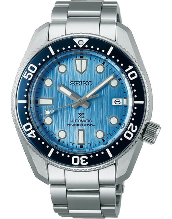 Seiko Prospex SPB299J1 — мужская модель, созданная для дайверов и ценителей функционального стиля. Корпус диаметром 41 мм выполнен из нержавеющей стали с сатинированной отделкой, а односторонний вращающийся безельБезельВнешний ободок, закрепляющий стекло. В спортивных часах так называется поворотное кольцо с делениями на циферблате, выполняет роль таймера – замеряет отрезки времени на шкале. Неподвижный безель – элемент декора. Однонаправленно вращающийся безель на дайверских часах позволяет фиксировать моменты погружения и выныривания на поверхность. с PVD-покрытиемPVDУльтратонкое покрытие наносится в технике вакуумного напыления, сочетает в себе нитрид титана особой прочности со слоем золота или оксида хрома. Несёт в себе декоративную или защитную функцию. с минутной шкалой позволяет контролировать время погружения. Защитную функцию выполняет сапфировое стеклоСапфировое стеклоПрочный и надёжный материал из кристалла сапфира синтетического происхождения, характеризующийся особой твёрдостью и устойчивостью к царапинам и повреждениям. с антибликовым покрытиемАнтибликовое покрытиеСлой оксида металла в 0,13-0,3 микрон, благодаря которому стекло часов не бликует и не отражает свет. Антибликовое покрытие уменьшает отражение света в 10 раз, обеспечивая отличную читаемость показателей циферблата., гарантирующим отличную читаемость даже под водой. В основе модели установлен автоматический калибр 6R35 с функциями часов, минут, секунд и даты, а также запасом хода до 70 часов. Водозащита 200 м (20 бар) соответствует международному стандарту ISO для профессиональных дайверских часов. Циферблат с текстурой, вдохновлённой арктическими льдами, оснащён крупными стрелками и индексами, покрытыми люминесцентным покрытиемЛюминесцентное покрытиеПозволяет считывать показания времени в темноте. Производители наносят на стрелки, часовые индексы, безель или поверхность циферблата светонакопительный состав, дающий холодное свечение., что обеспечивает превосходную видимость даже в полной темноте. Браслет из нержавеющей стали дополнен раскладной застёжкойРаскладная застёжкаТакой тип застёжки используется только на браслетах из металла. Она никогда не раскрывается полностью, происходит разделение на 2 и более частей. Раскладывающая застёжка снизит вероятность потери часов к минимуму. с системой удлинения для дайверов удлинение для дайверовУдлинение для дайверовЗастёжка с удлинением для дайверов представляет собой безопасное крепление, которое позволяет надевать часы поверх гидрокостюма. Гибкая застёжка удлиняется на 1-2 миллиметра., обеспечивающей удобство при использовании поверх гидрокостюма.