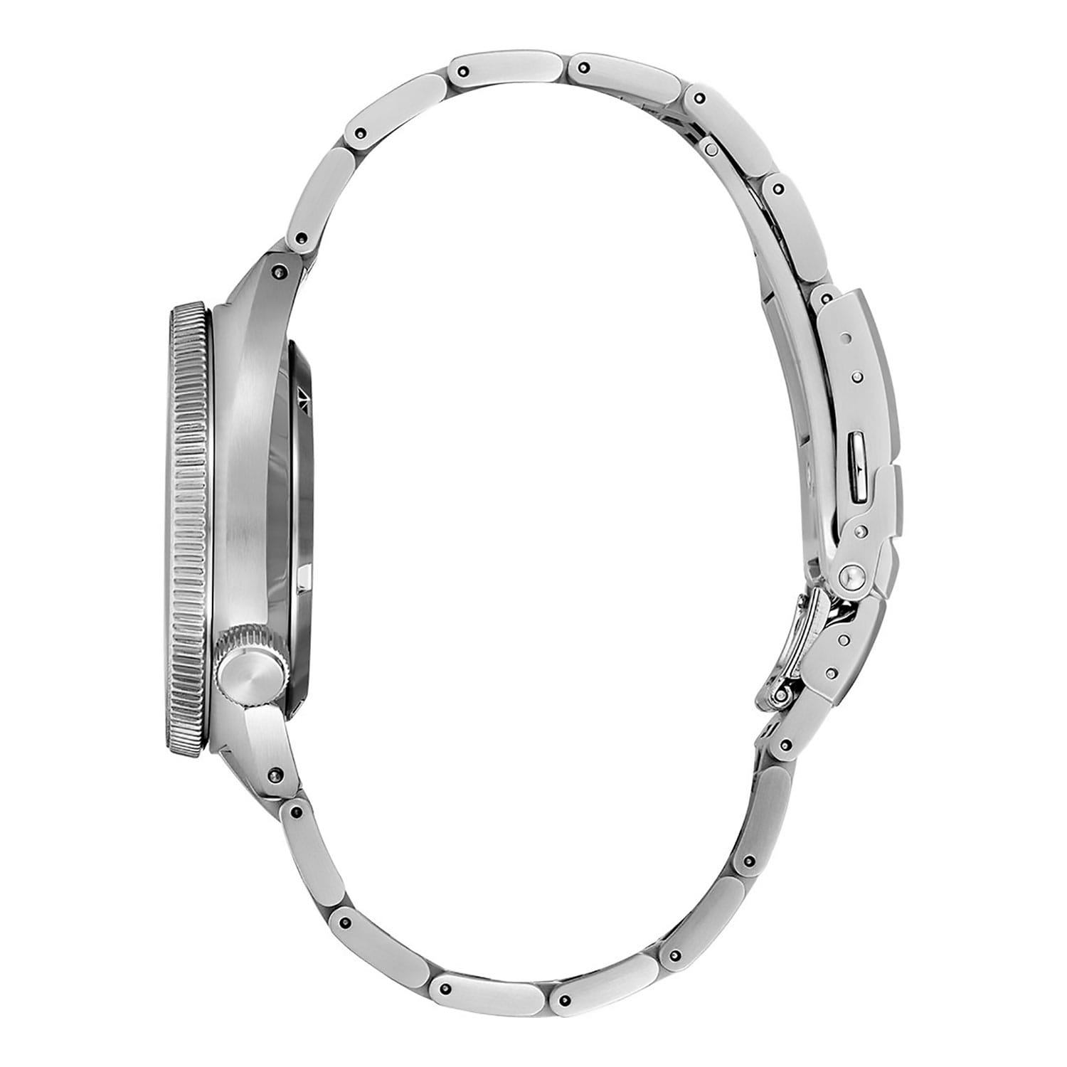 Мужские механические часы с автоподзаводом Seiko — это лимитированная модель, выпущенная тиражом всего 5000 экземпляров. Корпус размером 41×47 мм и толщиной 12 мм выполнен из нержавеющей стали. Циферблат оформлен штрихами в качестве индексов. Окошко даты расположено в положении 3 часов. Стрелки и метки с люминесцентным покрытиемЛюминесцентное покрытиеПозволяет считывать показания времени в темноте. Производители наносят на стрелки, часовые индексы, безель или поверхность циферблата светонакопительный состав, дающий холодное свечение. LumiBrite, обеспечивающим хорошую читаемость в темноте. Циферблат защищён сапфировым стекломСапфировое стеклоПрочный и надёжный материал из кристалла сапфира синтетического происхождения, характеризующийся особой твёрдостью и устойчивостью к царапинам и повреждениям. с антибликовым покрытиемАнтибликовое покрытиеСлой оксида металла в 0,13-0,3 микрон, благодаря которому стекло часов не бликует и не отражает свет. Антибликовое покрытие уменьшает отражение света в 10 раз, обеспечивая отличную читаемость показателей циферблата.. Механизм — автоматический калибр 6R35 (24 камня, частота 21 600 полуколебаний в час) с возможностью ручного завода, функцией и запасом хода до 70 часов. Часы обладают защитой от магнитных полей до 4800 А/мУдаропрочный корпусМеханизм заключён в корпус, выполненный из современных материалов, устойчивых к ударам, механическим повреждениям и падению с высоты: инновационный пластик, карбон, нержавеющая сталь, титан.. Часы оснащены стальным браслетом с раскладной застёжкойРаскладная застёжкаТакой тип застёжки используется только на браслетах из металла. Она никогда не раскрывается полностью, происходит разделение на 2 и более частей. Раскладывающая застёжка снизит вероятность потери часов к минимуму.. Водонепроницаемость 200 м позволяет использовать часы для плавания и дайвинга. Идеальный выбор для тех, кто ценит точность, надёжность и ограниченный выпуск.