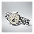 Механические часы Seiko Presage Classic SPB469 — это гармоничное сочетание японского мастерства, технологичности и эстетики. Модель вдохновлена цветами и текстурами традиционных японских ремёсел, что отражается как в дизайне циферблата, так и в общей стилистике часов. Часы оснащены калибром 6R5J — надёжным механизмом с автоподзаводом и возможностью ручной подзаводки. Механизм работает на частоте 21 600 полуколебаний в час, имеет 24 драгоценных камня и обеспечивает запас хода до 72 часов. Также реализована функция стоп-секунды для точной установки времени и защита от магнитных полей до 4800 А/м. Через прозрачное окошко на циферблате можно наблюдать за работой механизма, а также отслеживать время в двух форматах — 12-часовом и 24-часовом. Циферблат бежевого цвета выполнен в стиле «широ-иро» — в оттенке неотбелённого шелка, который при разном освещении играет глубокими переливами. Его поверхность украшена тонкой текстурой, создающей ощущение благородства и изысканности. Метки выполнены в виде аккуратных штрихов, а информация о времени представлена центральными стрелками. Защиту циферблата обеспечивает сапфировое стеклоСапфировое стеклоПрочный и надёжный материал из кристалла сапфира синтетического происхождения, характеризующийся особой твёрдостью и устойчивостью к царапинам и повреждениям. выпуклой формы с антибликовым покрытием с обеих сторон. Корпус изготовлен из нержавеющей стали, а задняя крышка — завинчивающаяся и прозрачная, что позволяет рассмотреть детали работы механизма. Браслет выполнен из стали и оснащён трёхсгибной раскладной застёжкойРаскладная застёжкаТакой тип застёжки используется только на браслетах из металла. Она никогда не раскрывается полностью, происходит разделение на 2 и более частей. Раскладывающая застёжка снизит вероятность потери часов к минимуму., обеспечивающей комфорт и уверенную фиксацию на запястье. Часы водонепроницаемы до 100 метров , что позволяет использовать их при плавании или занятиях водными видами спорта. Эти часы станут универсальным аксессуаром для тех, кто ценит сочетание культурного наследия, технологий и эстетики — идеальный выбор для повседневной носки и торжественных случаев.