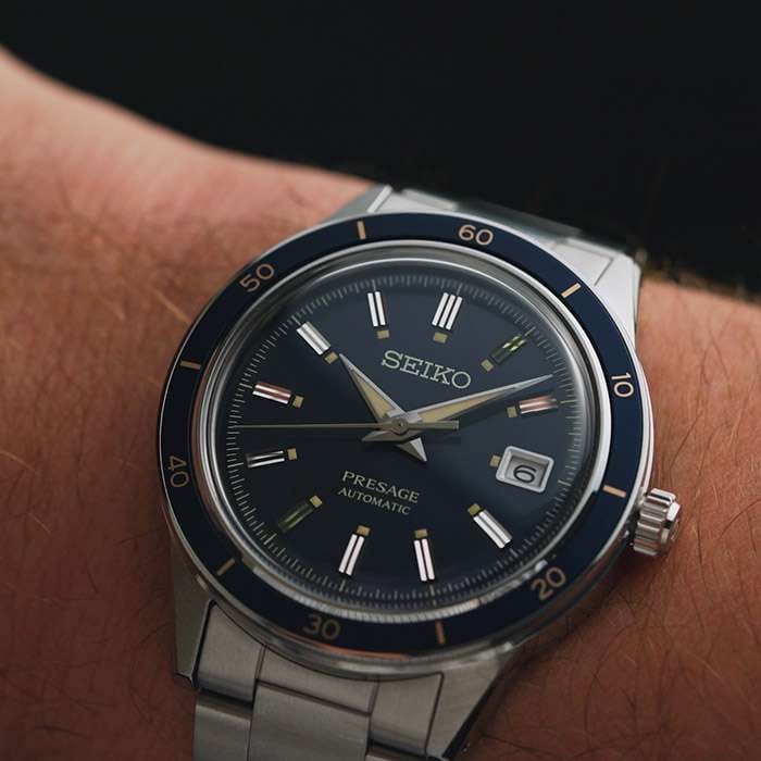 Мужские наручные часы Seiko SRPG05J1 из коллекции Presage Style 60s сочетают в себе классический дизайн и надежность современных технологий. Модель обладает круглым корпусом диаметром 40,8 мм, изготовленным из нержавеющей стали, что обеспечивает высокую устойчивость к внешним воздействиям . Толщина корпуса составляет 12 мм, а для защиты используется минеральное стеклоМинеральное стеклоМинеральное стекло представляет собой искусственно выращенный минерал кварца. Такое стекло отличается особой устойчивостью к повреждениям и царапинам. Уступает по некоторым качествам сапфировому стеклу. Hardlex Crystal, обеспечивающее прочную защиту от царапин . БезельБезельВнешний ободок, закрепляющий стекло. В спортивных часах так называется поворотное кольцо с делениями на циферблате, выполняет роль таймера – замеряет отрезки времени на шкале. Неподвижный безель – элемент декора. Однонаправленно вращающийся безель на дайверских часах позволяет фиксировать моменты погружения и выныривания на поверхность. с PVD-покрытиемPVDУльтратонкое покрытие наносится в технике вакуумного напыления, сочетает в себе нитрид титана особой прочности со слоем золота или оксида хрома. Несёт в себе декоративную или защитную функцию.. Браслет также выполнен из нержавеющей стали с раскладной застежкойРаскладная застёжкаТакой тип застёжки используется только на браслетах из металла. Она никогда не раскрывается полностью, происходит разделение на 2 и более частей. Раскладывающая застёжка снизит вероятность потери часов к минимуму., гарантирующей комфортное ношение . Циферблат глубокого синего цвета украшен текстурой, которая подчеркивает элегантный стиль модели. Часы оснащены функцией отображения даты на позиции «3 часа» . Модель работает на автоматическом механизме с калибром 4R35, который включает 23 камня и обладает запасом хода до 41 часа . Водонепроницаемость составляет WR 50, что позволяет защитить корпус от случайных брызг и кратковременного контакта с водой . Вдохновленные культурой 1960-х годов, эти часы демонстрируют уникальный стиль и внимание к деталям, сохраняя при этом практичность для повседневного использования.