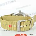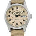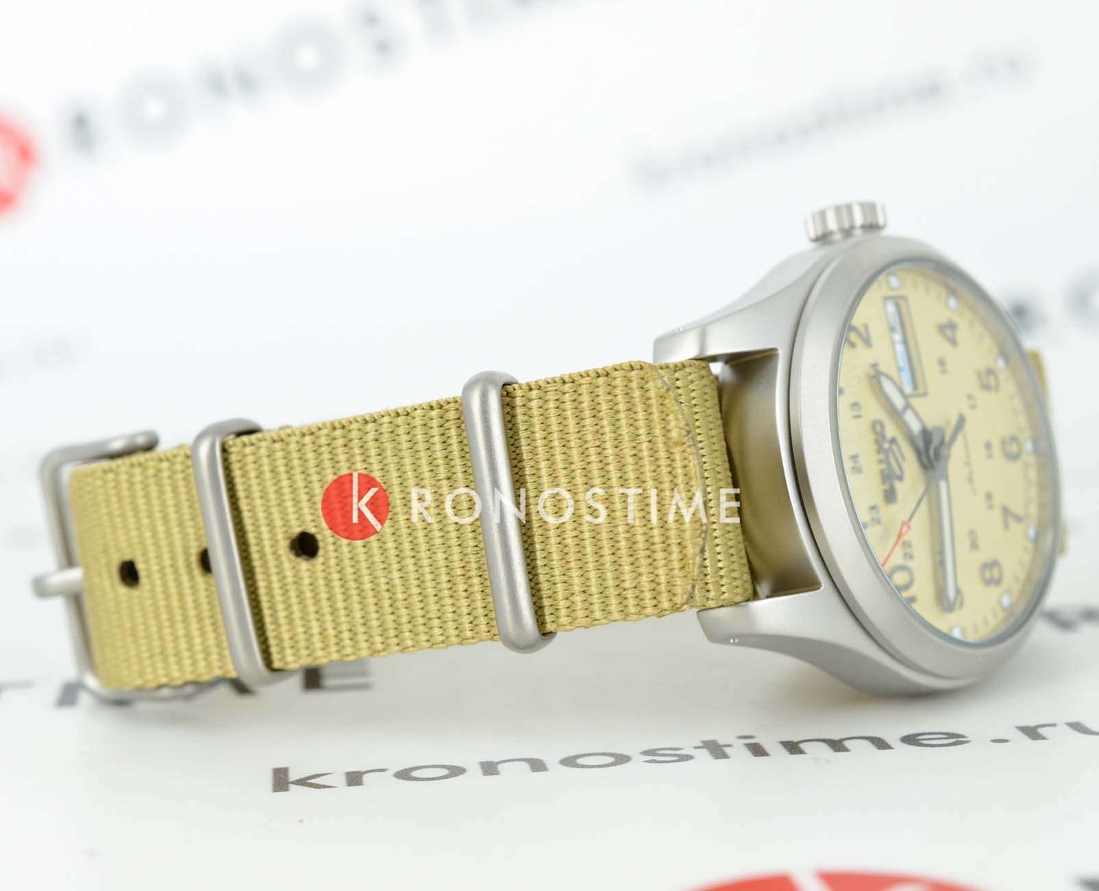 Модель Seiko SRPJ83K1 из серии Seiko 5 Sports Mid-Field — это компактные и надёжные автоматические часы в военном стиле с характерным «пустынным» оттенком. Корпус диаметром 36,4 мм выполнен из нержавеющей стали, оснащён прозрачной задней крышкой и обеспечивает водозащиту до 100 метров. Фиксированный стальной безельБезельВнешний ободок, закрепляющий стекло. В спортивных часах так называется поворотное кольцо с делениями на циферблате, выполняет роль таймера – замеряет отрезки времени на шкале. Неподвижный безель – элемент декора. Однонаправленно вращающийся безель на дайверских часах позволяет фиксировать моменты погружения и выныривания на поверхность. подчёркивает сдержанный и утилитарный дизайн модели. Песочный циферблат оформлен с акцентом на читаемость: крупная 12/24-часовая шкала, контрастные стрелки и метки с люминесцентным покрытиемЛюминесцентное покрытиеПозволяет считывать показания времени в темноте. Производители наносят на стрелки, часовые индексы, безель или поверхность циферблата светонакопительный состав, дающий холодное свечение. LumiBrite. На позиции «3 часа» расположены индикаторы даты и дня недели. Циферблат защищён прочным минеральным стекломМинеральное стеклоМинеральное стекло представляет собой искусственно выращенный минерал кварца. Такое стекло отличается особой устойчивостью к повреждениям и царапинам. Уступает по некоторым качествам сапфировому стеклу. Hardlex с куполообразной формой. Внутри установлен автоматический механизм Seiko 4R36 с функцией ручного подзавода, остановкой секундной стрелки, запасом хода до 41 часа и двойной календарной индикацией. Модель комплектуется текстильным ремешком NATOРемешок NATOРемешок NATO — это прочный, универсальный и сменный часовой ремешок, изначально созданный для военных. Он изготовлен из нейлона или другого прочного материала и имеет уникальную конструкцию, которая позволяет часам оставаться на запястье даже в случае поломки одной из прикрепляющих точек. песочного цвета шириной 18 мм — удобным, лёгким и устойчивым к износу. Seiko SRPJ83K1 — это универсальные полевые часы с характером и компактным корпусом, сочетающие практичность, военную строгость и надёжную механику.
