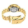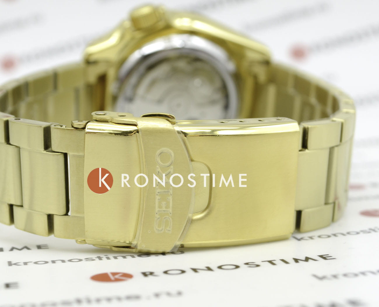 Водозащита 100 метров (10 бар) позволяет использовать часы для плавания и других водных видов спорта. Стальной браслет с PVD-покрытиемPVDУльтратонкое покрытие наносится в технике вакуумного напыления, сочетает в себе нитрид титана особой прочности со слоем золота или оксида хрома. Несёт в себе декоративную или защитную функцию. золотого цвета и раскладной застёжкойРаскладная застёжкаТакой тип застёжки используется только на браслетах из металла. Она никогда не раскрывается полностью, происходит разделение на 2 и более частей. Раскладывающая застёжка снизит вероятность потери часов к минимуму. обеспечивает комфортное ношение и надёжную фиксацию на запястье.