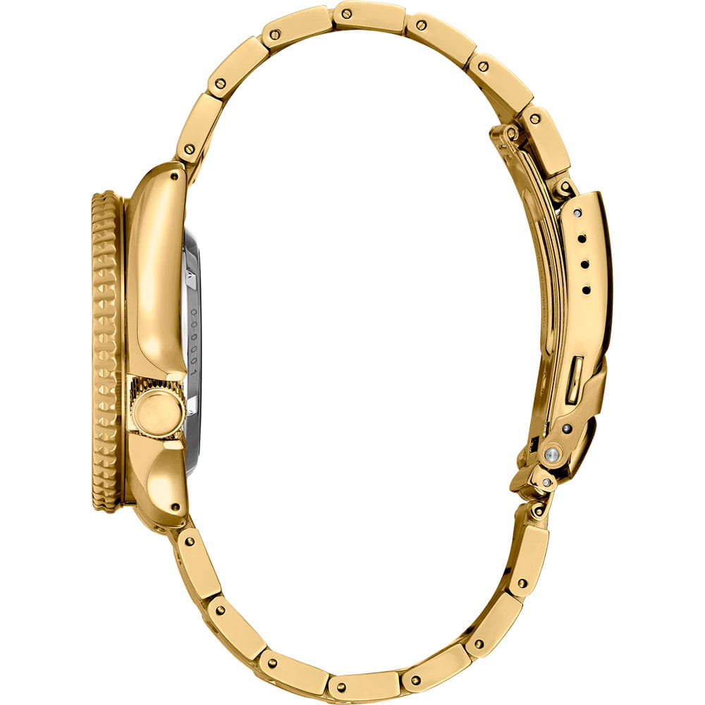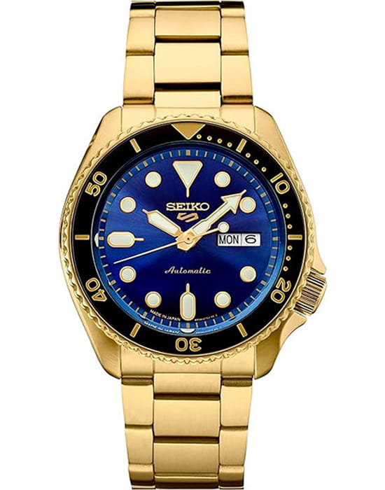 Изысканные мужские часы Seiko 5 Sports U.S. Special SRPK20 сочетают в себе элегантный дизайн и надёжность, характерные для японского часового мастерства. Корпус диаметром 42,5 мм выполнен из нержавеющей стали с безелем с PVD-покрытиемPVDУльтратонкое покрытие наносится в технике вакуумного напыления, сочетает в себе нитрид титана особой прочности со слоем золота или оксида хрома. Несёт в себе декоративную или защитную функцию., придающим часам утончённый вид. Синий циферблат защищён минеральным стекломМинеральное стеклоМинеральное стекло представляет собой искусственно выращенный минерал кварца. Такое стекло отличается особой устойчивостью к повреждениям и царапинам. Уступает по некоторым качествам сапфировому стеклу. с повышенной прочностью. Внутри часов установлен механический калибр 4R36 с автоподзаводом, обеспечивающий точность хода и запас хода до 41 часа. Функция отображения дня недели и даты расположена на отметке 3 часа, что добавляет практичности в повседневном использовании. Водозащита 100 метров (10 бар) позволяет использовать часы для плавания и других водных видов спорта. Стальной браслет с золотистым PVD-покрытиемPVDУльтратонкое покрытие наносится в технике вакуумного напыления, сочетает в себе нитрид титана особой прочности со слоем золота или оксида хрома. Несёт в себе декоративную или защитную функцию. и раскладной застёжкойРаскладная застёжкаТакой тип застёжки используется только на браслетах из металла. Она никогда не раскрывается полностью, происходит разделение на 2 и более частей. Раскладывающая застёжка снизит вероятность потери часов к минимуму. обеспечивает комфортное ношение и надёжную фиксацию на запястье. Эти часы идеально подойдут для тех, кто ценит сочетание стиля и функциональности в одном аксессуаре.