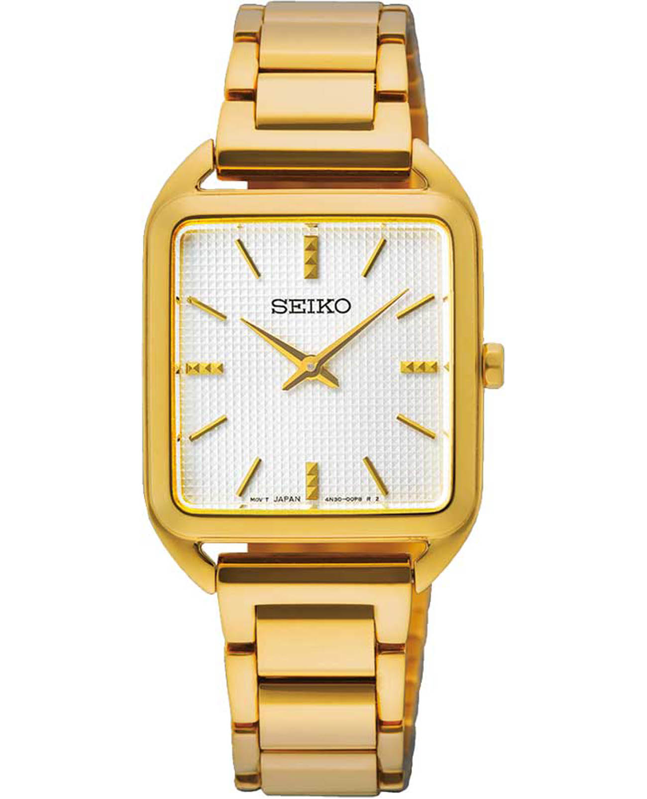Женские японские часы Seiko Discover More SWR078P1 c кварцевым механизмом с высокой точностью с калибром 4N30. Минеральное стеклоМинеральное стеклоМинеральное стекло представляет собой искусственно выращенный минерал кварца. Такое стекло отличается особой устойчивостью к повреждениям и царапинам. Уступает по некоторым качествам сапфировому стеклу. с повышенной прочностью Hardlex устойчивое к появлению царапин, обладающее высокой прозрачностью. Водозащита до 5 ATM позволяет не снимать часы при дожде, мытье рук или случайных брызгах. Корпус и браслет изготовлены из нержавеющей стали с PVDPVDУльтратонкое покрытие наносится в технике вакуумного напыления, сочетает в себе нитрид титана особой прочности со слоем золота или оксида хрома. Несёт в себе декоративную или защитную функцию. покрытием. Браслет с раскладной застёжкойРаскладная застёжкаТакой тип застёжки используется только на браслетах из металла. Она никогда не раскрывается полностью, происходит разделение на 2 и более частей. Раскладывающая застёжка снизит вероятность потери часов к минимуму. с фиксатором. Белый циферблат с метками в виде штрихов. Seiko — это гармония изящного дизайна и технологичной надёжности, компактный и стильный выбор для повседневной классики.