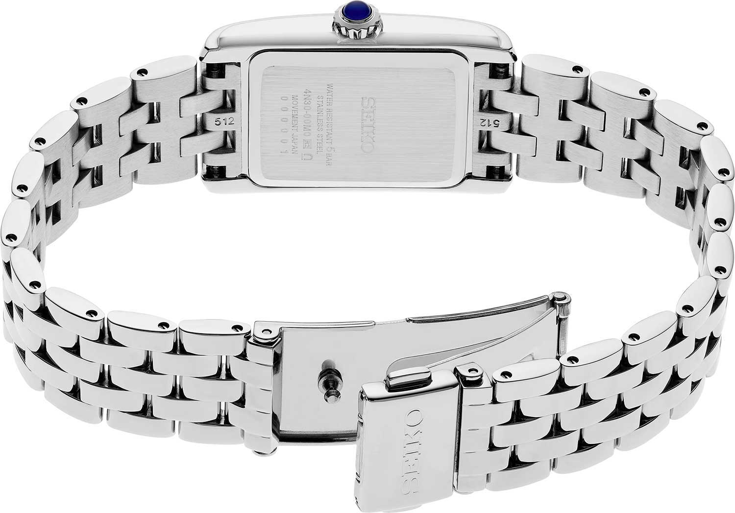 Женские японские часы Seiko Discover More SWR085P1 c кварцевым механизм с высокой точностью с калибром 4N30. Минеральное стеклоМинеральное стеклоМинеральное стекло представляет собой искусственно выращенный минерал кварца. Такое стекло отличается особой устойчивостью к повреждениям и царапинам. Уступает по некоторым качествам сапфировому стеклу. с повышенной прочностью Hardlex устойчивое к появлению царапин, обладающее высокой прозрачностью. Водозащита до 5 ATM позволяет не снимать часы при дожде, мытье рук или случайных брызгах. Корпус и браслет изготовлены из нержавеющей стали. Браслет с раскладной застёжкойРаскладная застёжкаТакой тип застёжки используется только на браслетах из металла. Она никогда не раскрывается полностью, происходит разделение на 2 и более частей. Раскладывающая застёжка снизит вероятность потери часов к минимуму. с фиксатором. Синий циферблат с метками в виде римских цифр. Seiko — это гармония изящного дизайна и технологичной надёжности, компактный и стильный выбор для повседневной классики.
