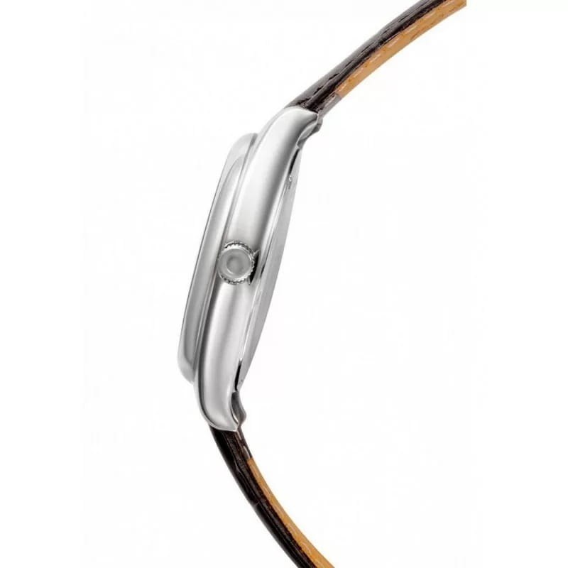 Российские механические наручные часы Слава Сенат 1490867/300-8215, которые станут идеальным аксессуаром для повседневного ношения. Эти часы сочетают в себе элегантность и практичность, предлагая безупречный стиль и надежность. Оснащенные механизмом Miyota 8215 с автоподзаводом, они обеспечивают точность и долговечность, поддерживая запас хода до 42 часов. Стальной корпус с сапфировым стекломСапфировое стеклоПрочный и надёжный материал из кристалла сапфира синтетического происхождения, характеризующийся особой твёрдостью и устойчивостью к царапинам и повреждениям. защищает циферблат цвета слоновой кости с римскими цифрами. На циферблате изображены герб Российской Федерации. Часы также имеют календарь с окошком даты на 3 часах и водозащиту до 50WR, что делает их надежными в различных условиях. Текстурированный кожаный ремешок с классической застежкой завершает этот изысканный образ.