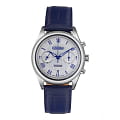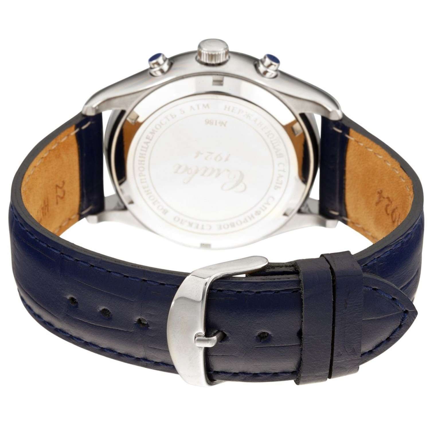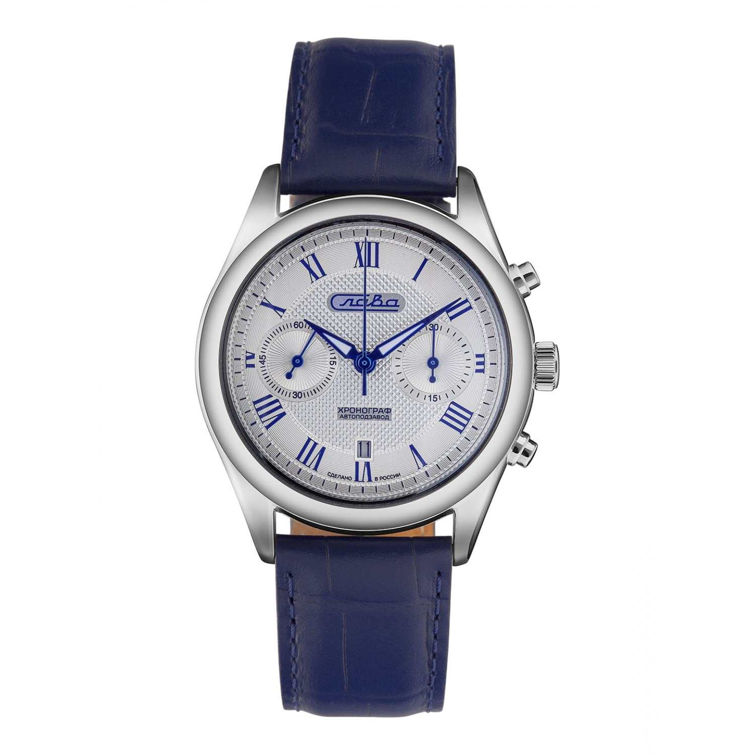 Российские механические наручные часы-хронографХронографФункция позволяет измерять отрезки времени с особой точностью: часы, минуты, секунды. Верным признаком хронографа является наличие на циферблате 3 дополнительных окошек-счётчиков. с секундомеромСекундомерСекундоме́р — прибор, способный измерять интервалы времени с точностью до долей секунды. Слава Сенат 1880139/300-4617, которые станут идеальным аксессуаром для повседневного ношения. Эти часы сочетают в себе элегантность и практичность, предлагая безупречный стиль и надежность. Оснащенные механизмом Peacock 4617 с автоподзаводом, они обеспечивают точность и долговечность. Стальной корпус с сапфировым стекломСапфировое стеклоПрочный и надёжный материал из кристалла сапфира синтетического происхождения, характеризующийся особой твёрдостью и устойчивостью к царапинам и повреждениям. защищает белый циферблат с римскими цифрами. Часы также имеют календарь с окошком даты на 6 часах и водозащиту до 50WR, что делает их надежными в различных условиях. Стрелки часов с люминесцентным покрытиемЛюминесцентное покрытиеПозволяет считывать показания времени в темноте. Производители наносят на стрелки, часовые индексы, безель или поверхность циферблата светонакопительный состав, дающий холодное свечение., что облегчает чтение времени даже в условиях слабого освещения. Текстурированный кожаный синий ремешок с классической застежкой завершает этот изысканный образ.