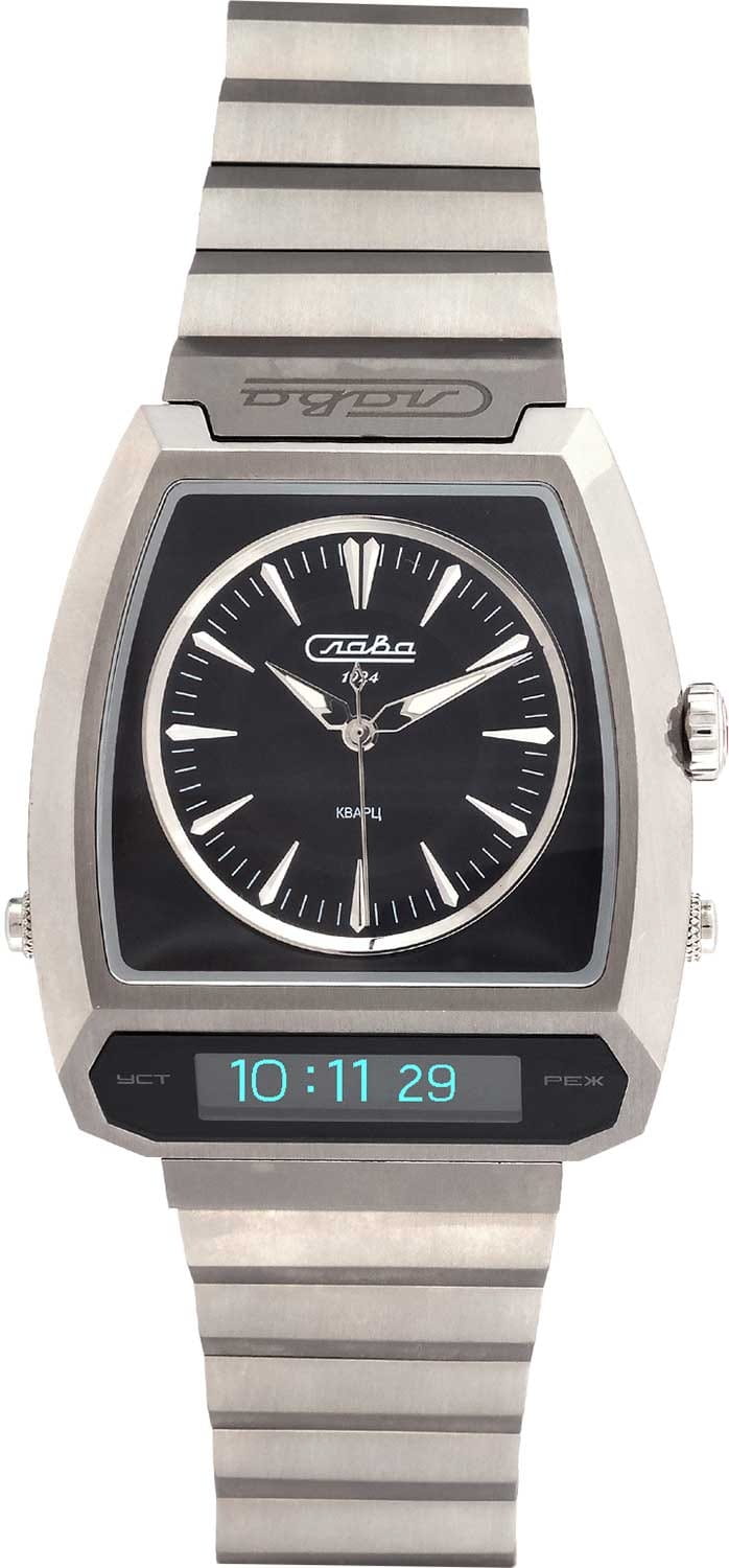 Часы Слава 9002737/100-GL32 представляют собой уникальное сочетание ретро-стиля и современных технологий, которые обязательно привлекут внимание коллекционеров и ценителей эксклюзивных аксессуаров. Выпущенные в России, эти лимитированные часы вдохновлены дизайном моделей для водителей, популярных в 1970-х годах. В основе их создания лежит концепция, позволяющая легко считывать время, не отрывая рук от руля, что делает их особенно удобными для автолюбителей. Корпус и браслет изготовлены из легкого и прочного титана, придающего часам элегантный и современный вид. Часы оснащены двумя механизмами, включая кварцевый механизм калибра Miyota GL32 и специально разработанный электронный механизм, который позволяет одновременно отображать время в двух часовых поясах. Черный циферблат с штриховыми метками надежно защищен сапфировым стекломСапфировое стеклоПрочный и надёжный материал из кристалла сапфира синтетического происхождения, характеризующийся особой твёрдостью и устойчивостью к царапинам и повреждениям., устойчивым к царапинам. Стрелки с люминесцентным покрытиемЛюминесцентное покрытиеПозволяет считывать показания времени в темноте. Производители наносят на стрелки, часовые индексы, безель или поверхность циферблата светонакопительный состав, дающий холодное свечение., что облегчает чтение времени даже в условиях слабого освещения. Дополнительные функции включают будильник, секундомер, таймер обратного отсчета и автоматический календарь, который отображает число, день недели, месяц и год. Рифленая заводная головка и задняя крышка, крепящаяся на винтах, подчеркивают внимание к деталям. Индивидуальный номер, выгравированный на боковой стенке, подтверждает эксклюзивность каждой модели. Титановый браслет с застежкой «бабочка»Застёжка "бабочка"Такой вид застёжки дополняется предохранителями, помогающими избежать случайного раскрытия браслета. Обладают изящным исполнением. обеспечивает надежную фиксацию на запястье. Лимитированная серия ограничена 500 экземплярами, что подчеркивает их уникальность. Часы поставляются в подарочной упаковке, что делает их идеальным выбором для подарка или личной коллекции. Часы обладают водозащитой уровня WR 50, что позволяет им выдерживать воздействие воды в повседневных ситуациях.