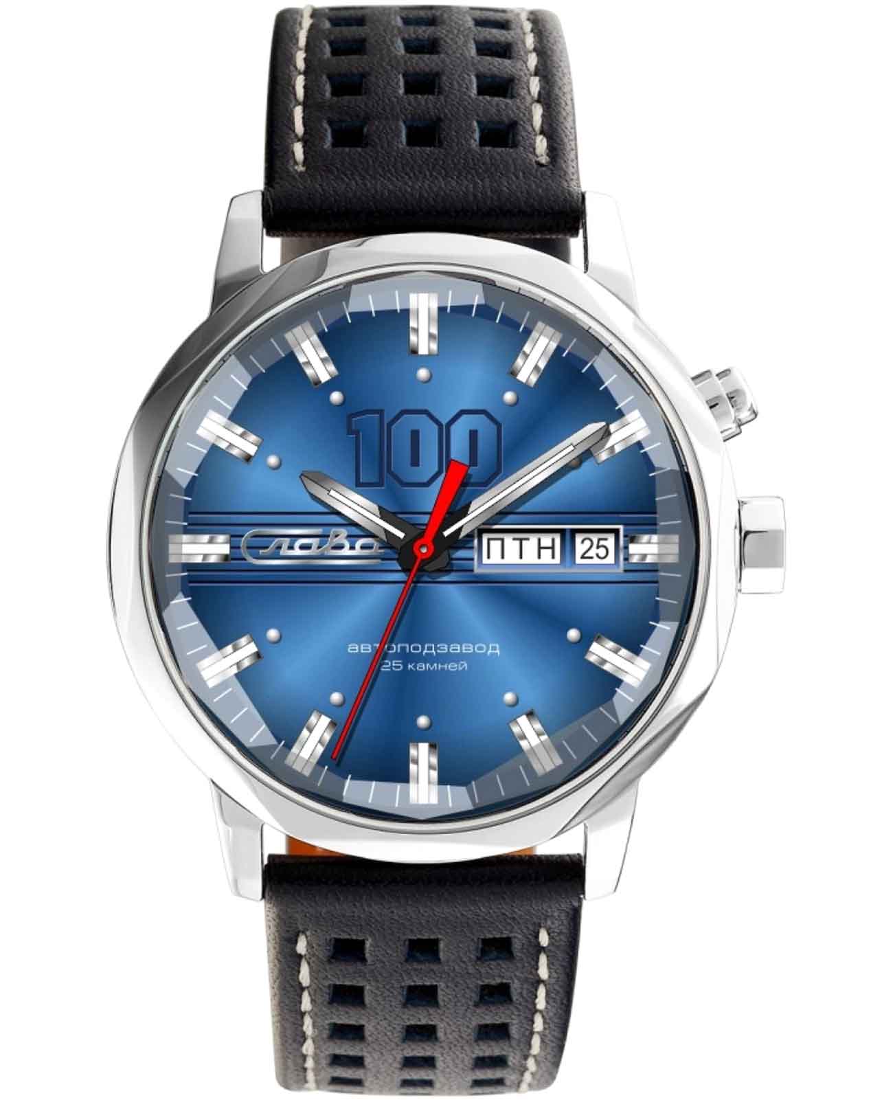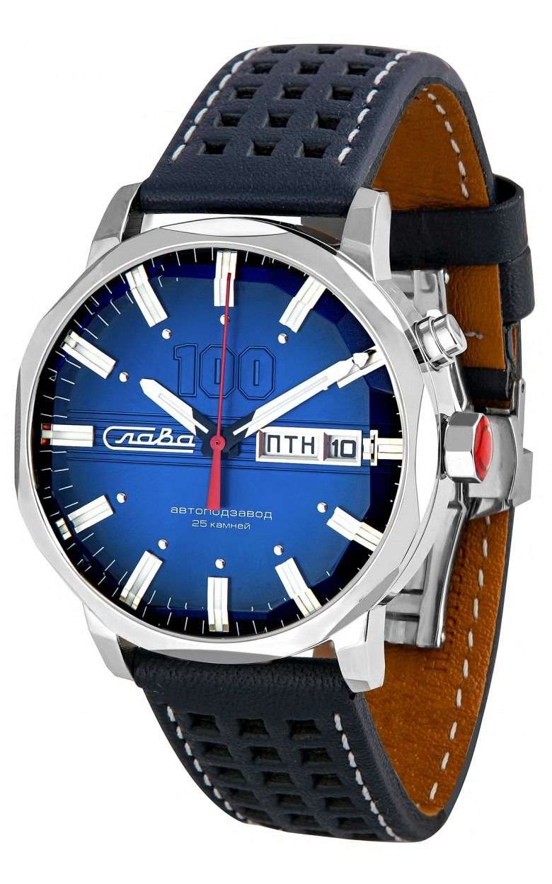Российские наручные часы Слава Эра 9020579/300-2427 — элегантное сочетание традиций и современных технологий. Эти часы оснащены механическим механизмом с автоподзаводом и калибром Слава 2427, который обеспечивает точность и надежность. Корпус выполнен из нержавеющей стали, что придаёт часам прочность и долговечность, а синий циферблат с накладными метками добавляет изысканности. Стрелки и метки с люминесцентным покрытиемЛюминесцентное покрытиеПозволяет считывать показания времени в темноте. Производители наносят на стрелки, часовые индексы, безель или поверхность циферблата светонакопительный состав, дающий холодное свечение., что облегчает чтение времени даже в условиях слабого освещения. Часы оборудованы функцией календаря, отображающего дату и день недели, с удобным расположением в позиции 3 часа. Сапфировое стеклоСапфировое стеклоПрочный и надёжный материал из кристалла сапфира синтетического происхождения, характеризующийся особой твёрдостью и устойчивостью к царапинам и повреждениям., которое еще и граненое, защищает циферблат от царапин. Водозащита уровня 100WR позволяет использовать часы в различных условиях. Прозрачная задняя крышка позволяет наблюдать за работой механизма, а заводная головка с красной эмалью и фирменной буквой «С» добавляет уникальности. Перфорированный кожаный ремешок, прошитый белой нитью, и застежка «бабочка»Застёжка "бабочка"Такой вид застёжки дополняется предохранителями, помогающими избежать случайного раскрытия браслета. Обладают изящным исполнением. обеспечивают комфорт и стиль. Лимитированная серия ограничена 500 экземплярами, что подчеркивает их уникальность. Эти часы станут надежным спутником в вашей повседневной жизни.