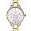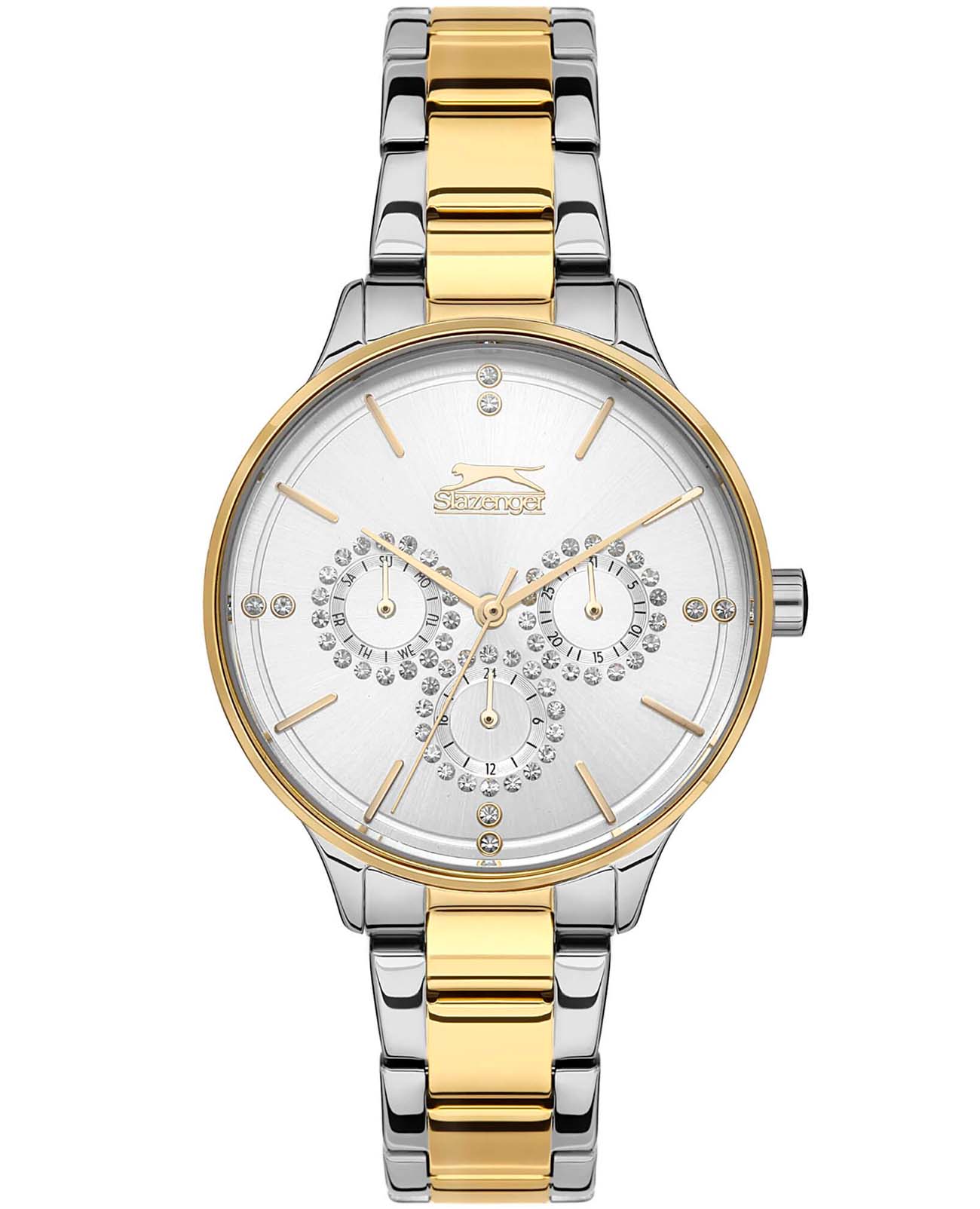 Женские наручные часы Slazenger SL.09.2019.4.02 сочетают в себе элегантный дизайн и функциональность. Модель обладает круглым корпусом диаметром 36 мм, изготовленным из суперметалла, что обеспечивает высокую устойчивость к внешним воздействиям. Браслет выполнен из того же материала с частичным IP-покрытиемIP-покрытиеМетод ионного напыления. Демонстрирует повышенную устойчивость к истиранию, окислению и химическим веществам. Под воздействием высокого давления и температуры около 1500°C молекулы металла надёжно соединяются с частицами корпуса часов. и оснащен раскладной застежкойРаскладной замокДанный вариант застежки используется только на часах с металлическим браслетом. Отличительная особенность такого крепления в том, что длина браслета становится универсальной и вы можете самостоятельно отрегулировать нужный вам размер – застежка просто двигается по браслету часов., гарантирующей комфортное ношение и безопасность. Серебристый циферблат украшен малыми циферблатами, которые отображают дату, день недели и текущее время в 24-часовом формате. Для защиты используется минеральное стеклоМинеральное стеклоМинеральное стекло представляет собой искусственно выращенный минерал кварца. Такое стекло отличается особой устойчивостью к повреждениям и царапинам. Уступает по некоторым качествам сапфировому стеклу., обеспечивающее прочную защиту от царапин. Часы работают на кварцевом механизме, что гарантирует точное время без необходимости подзаводки. Водонепроницаемость достигает 3 атмосфер (WR30), что позволяет использовать их при контакте с брызгами воды, однако не рекомендуется для плавания или дайвинга.