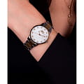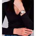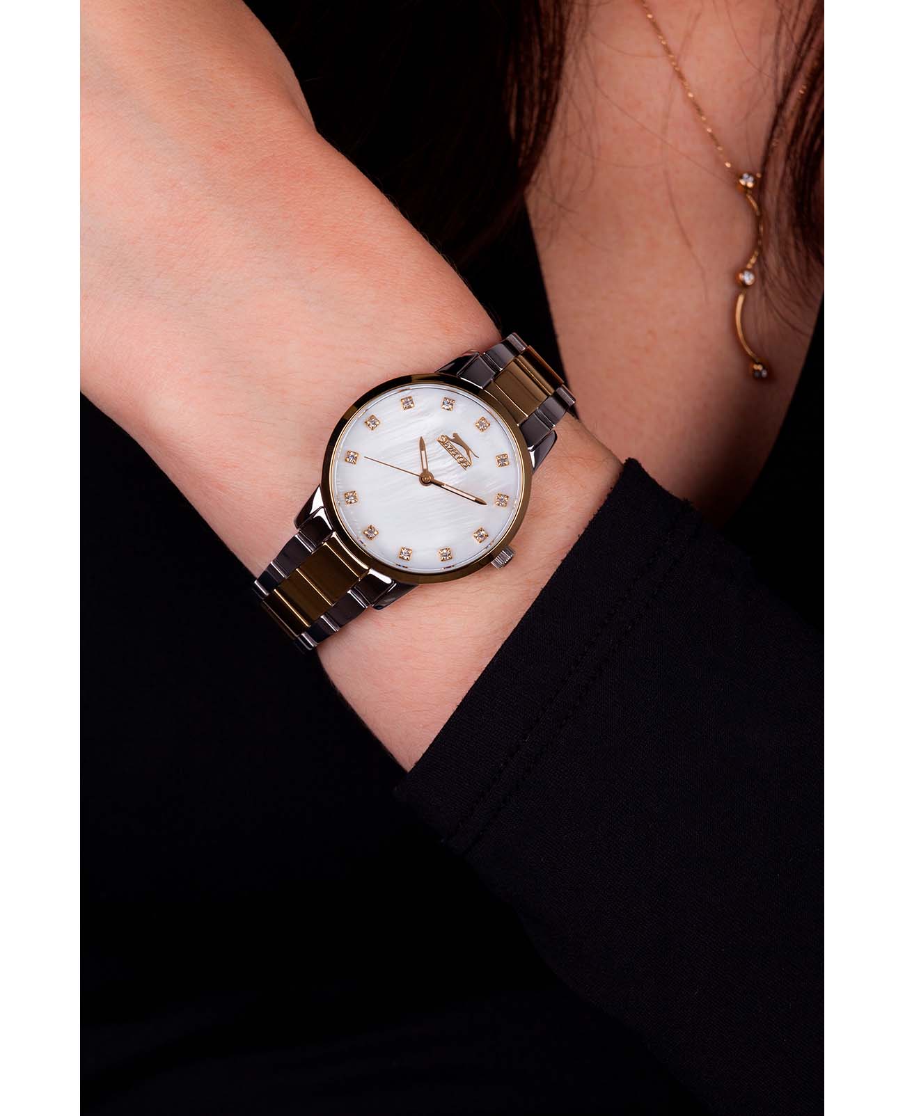 Женские наручные часы Slazenger SL.09.2071.3.07 сочетают в себе элегантный дизайн и практичность современных технологий. Модель обладает круглым корпусом диаметром 32 мм, изготовленным из стали, что обеспечивает высокую устойчивость к внешним воздействиям. Браслет выполнен из суперметалла с частичным IP-покрытиемIP-покрытиеМетод ионного напыления. Демонстрирует повышенную устойчивость к истиранию, окислению и химическим веществам. Под воздействием высокого давления и температуры около 1500°C молекулы металла надёжно соединяются с частицами корпуса часов., добавляя модели особую изысканность. Для защиты используется минеральное стеклоМинеральное стеклоМинеральное стекло представляет собой искусственно выращенный минерал кварца. Такое стекло отличается особой устойчивостью к повреждениям и царапинам. Уступает по некоторым качествам сапфировому стеклу., обеспечивающее прочную защиту от царапин. БезельБезельВнешний ободок, закрепляющий стекло. В спортивных часах так называется поворотное кольцо с делениями на циферблате, выполняет роль таймера – замеряет отрезки времени на шкале. Неподвижный безель – элемент декора. Однонаправленно вращающийся безель на дайверских часах позволяет фиксировать моменты погружения и выныривания на поверхность. с IP-покрытиемIP-покрытиеМетод ионного напыления. Демонстрирует повышенную устойчивость к истиранию, окислению и химическим веществам. Под воздействием высокого давления и температуры около 1500°C молекулы металла надёжно соединяются с частицами корпуса часов.. Часы работают на японском кварцевом механизме, гарантирующем точное время без необходимости подзаводки. Водонепроницаемость часов достигает 3 атмосфер (30 метров), что позволяет использовать их при контакте с брызгами воды, однако не рекомендуется для плавания или дайвинга. Вес часов составляет 76 грамм, делая их удобными для повседневного использования.