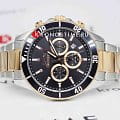 Мужские наручные часы Slazenger SL.09.2091.2.05 сочетают в себе классический дизайн и современные технологии. Модель обладает круглым корпусом диаметром 44 мм из суперметалла, поворотный безельБезельВнешний ободок, закрепляющий стекло. В спортивных часах так называется поворотное кольцо с делениями на циферблате, выполняет роль таймера – замеряет отрезки времени на шкале. Неподвижный безель – элемент декора. Однонаправленно вращающийся безель на дайверских часах позволяет фиксировать моменты погружения и выныривания на поверхность. с IP-покрытиемIP-покрытиеМетод ионного напыления. Демонстрирует повышенную устойчивость к истиранию, окислению и химическим веществам. Под воздействием высокого давления и температуры около 1500°C молекулы металла надёжно соединяются с частицами корпуса часов., что обеспечивает устойчивость к царапинам и коррозии. Браслет изготовлен из нержавеющей стали с частичным IP-покрытиемIP-покрытиеМетод ионного напыления. Демонстрирует повышенную устойчивость к истиранию, окислению и химическим веществам. Под воздействием высокого давления и температуры около 1500°C молекулы металла надёжно соединяются с частицами корпуса часов. на раскладной застежкеРаскладной замокДанный вариант застежки используется только на часах с металлическим браслетом. Отличительная особенность такого крепления в том, что длина браслета становится универсальной и вы можете самостоятельно отрегулировать нужный вам размер – застежка просто двигается по браслету часов., гарантирующей удобство и надежность при ношении. Циферблат черного цвета украшен стрелками с люминесцентным покрытиемЛюминесцентное покрытиеПозволяет считывать показания времени в темноте. Производители наносят на стрелки, часовые индексы, безель или поверхность циферблата светонакопительный состав, дающий холодное свечение., что обеспечивает читаемость времени даже в условиях слабого освещения. Для защиты циферблата используется минеральное стеклоМинеральное стеклоМинеральное стекло представляет собой искусственно выращенный минерал кварца. Такое стекло отличается особой устойчивостью к повреждениям и царапинам. Уступает по некоторым качествам сапфировому стеклу., устойчивое к царапинам и повреждениям. Часы оснащены кварцевым механизмом Miyota, обеспечивающим точность хода с погрешностью не более ±15 секунд в месяц. Модель также включает функции отображения даты, дня недели и второго часового поясаВторой часовой поясФункция, позволяющая отображать время двух часовых поясов одновременно., что делает ее практичной для повседневного использования. Водонепроницаемость часов составляет 5 атмосфер (50 метров), что позволяет использовать их при плавании, но не рекомендуется для дайвинга. Вес модели — 143 грамма, а производитель предоставляет гарантию сроком 12 месяцев. SL.09.2091.2.05 — это стильный аксессуар, который подчеркнет стиль и практичность в любом образе мужчины.