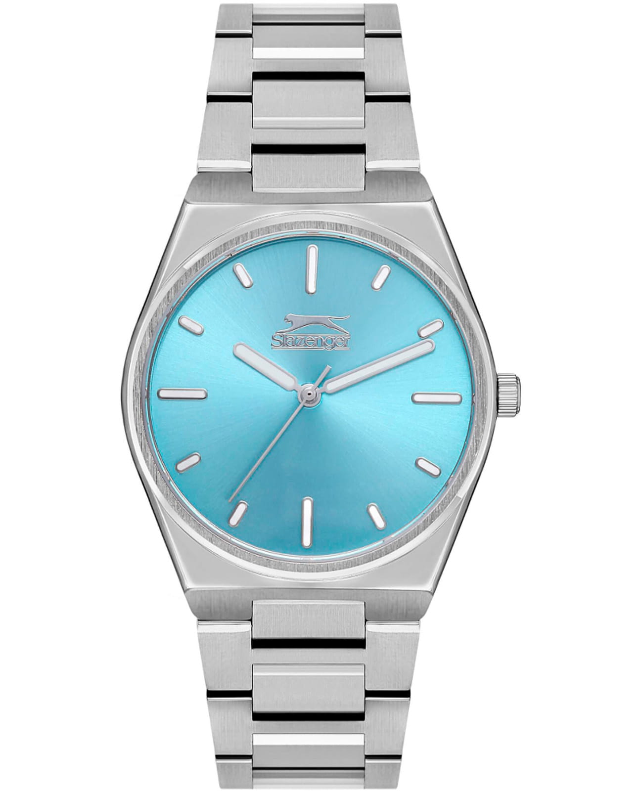 Женские наручные часы Slazenger SL.09.2116.3.04 сочетают в себе элегантный дизайн и практичность современных технологий. Модель обладает круглым корпусом диаметром 34 мм, изготовленным из суперметалла, что обеспечивает высокую устойчивость к внешним воздействиям. Браслет выполнен из металла с раскладной застежкойРаскладной замокДанный вариант застежки используется только на часах с металлическим браслетом. Отличительная особенность такого крепления в том, что длина браслета становится универсальной и вы можете самостоятельно отрегулировать нужный вам размер – застежка просто двигается по браслету часов., гарантирующей комфортное ношение и безопасность. Циферблат светло-голубого цвета декорирован стрелками, обеспечивающими четкую читаемость времени. Для защиты используется минеральное стеклоМинеральное стеклоМинеральное стекло представляет собой искусственно выращенный минерал кварца. Такое стекло отличается особой устойчивостью к повреждениям и царапинам. Уступает по некоторым качествам сапфировому стеклу., обеспечивающее прочную защиту от царапин. Часы работают на кварцевом механизме, что гарантирует точное время без необходимости подзаводки. Водонепроницаемость часов достигает 3 атмосфер (30M), что позволяет использовать их в бытовых условиях, однако не рекомендуется для плавания или водных видов спорта. Модель также оснащена функцией отображения даты, делая ее практичной для повседневного использования . Толщина модели составляет 9 мм.