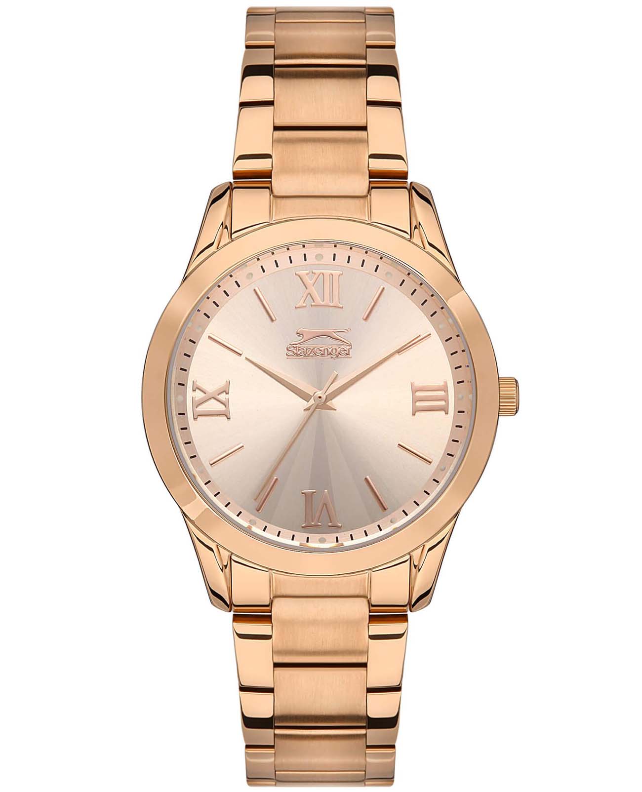 Slazenger SL.09.2132.3.04 — это элегантные женские наручные часы. Они имеют круглый циферблат с диаметром 36 мм, выполненный в цвете розовое золото. Корпус часов, толщиной 10 мм, изготовлен из суперметалла с IP-покрытиемIP-покрытиеМетод ионного напыления. Демонстрирует повышенную устойчивость к истиранию, окислению и химическим веществам. Под воздействием высокого давления и температуры около 1500°C молекулы металла надёжно соединяются с частицами корпуса часов., что обеспечивает долговечность и устойчивость к коррозии. Браслет также выполнен из суперметалла с золотистым IP-покрытиемIP-покрытиеМетод ионного напыления. Демонстрирует повышенную устойчивость к истиранию, окислению и химическим веществам. Под воздействием высокого давления и температуры около 1500°C молекулы металла надёжно соединяются с частицами корпуса часов., придавая часам стильный и современный вид. Размер браслета (H1-H2): 16-18 мм. Часы оснащены кварцевым механизмом, который гарантирует точность хода. Циферблат защищен минеральным стекломМинеральное стеклоМинеральное стекло представляет собой искусственно выращенный минерал кварца. Такое стекло отличается особой устойчивостью к повреждениям и царапинам. Уступает по некоторым качествам сапфировому стеклу., устойчивым к царапинам. Модель водонепроницаема до 30 метров, что позволяет носить ее во время дождя или мытья рук. Браслет оснащен раскладной застёжкойРаскладная застёжкаТакой тип застёжки используется только на браслетах из металла. Она никогда не раскрывается полностью, происходит разделение на 2 и более частей. Раскладывающая застёжка снизит вероятность потери часов к минимуму. для удобства использования. Эти часы сочетают в себе функциональность и стильный дизайн, делая их отличным аксессуаром для повседневного использования и особых случаев.