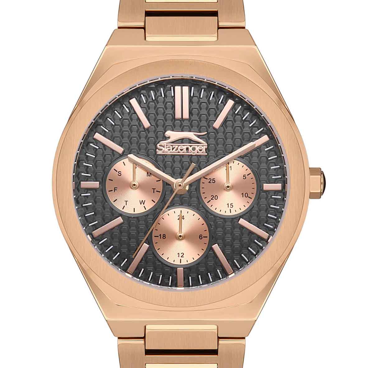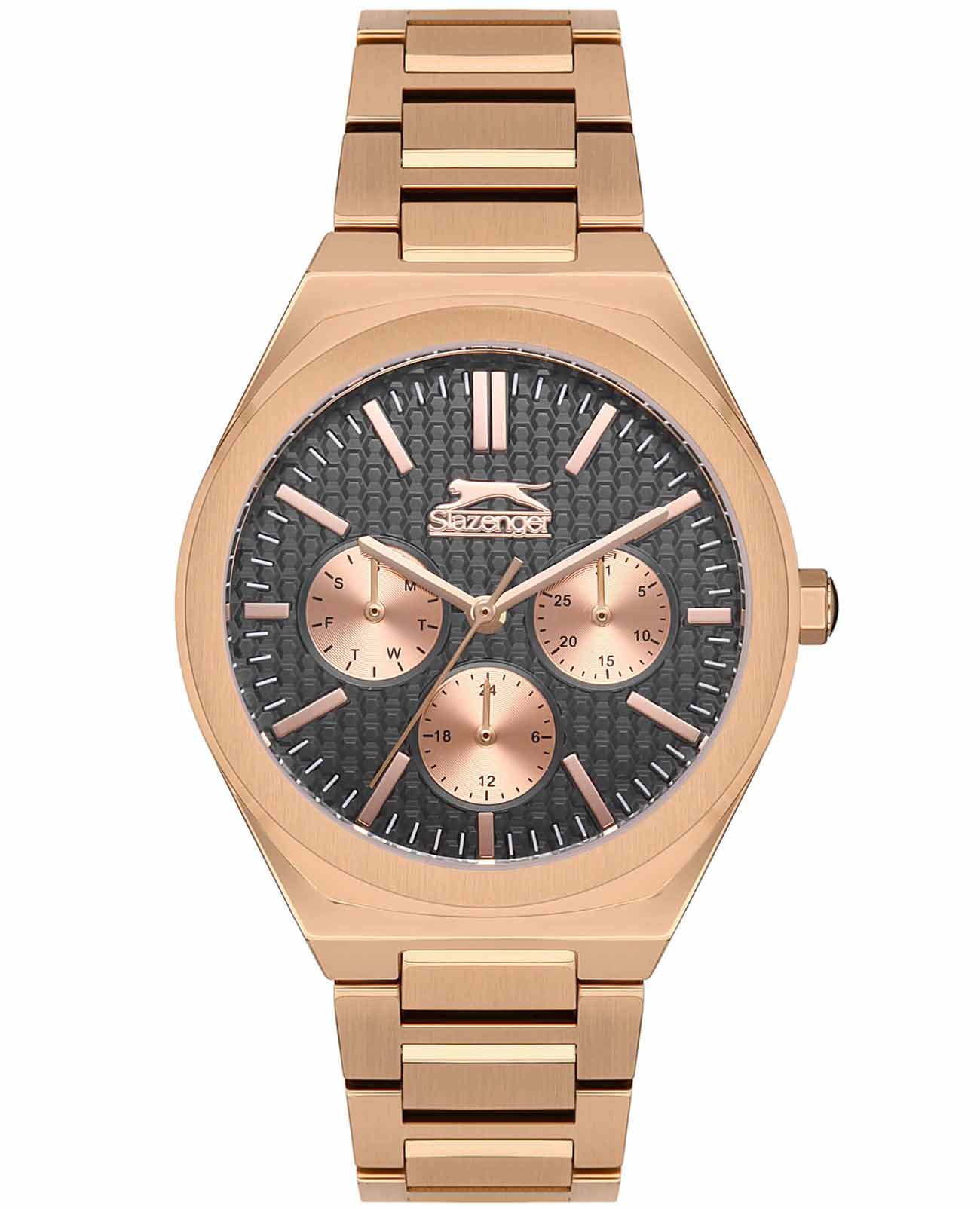 Элегантные женские часы Slazenger SL.09.2138.4.04 воплощают в себе утонченный стиль и функциональность. Их изящный круглый корпус из суперметалла с золотистым IP-покрытиемIP-покрытиеМетод ионного напыления. Демонстрирует повышенную устойчивость к истиранию, окислению и химическим веществам. Под воздействием высокого давления и температуры около 1500°C молекулы металла надёжно соединяются с частицами корпуса часов. гармонично сочетается с изысканным серым циферблатом и золотистыми малыми циферблатами, создавая неповторимый образ. Минималистичный дизайн подчеркивает чистоту линий и внимание к деталям. Циферблат защищен минеральным стекломМинеральное стеклоМинеральное стекло представляет собой искусственно выращенный минерал кварца. Такое стекло отличается особой устойчивостью к повреждениям и царапинам. Уступает по некоторым качествам сапфировому стеклу., устойчивым к царапинам. Часы имеют надежный кварцевый механизм, обеспечивающий точность хода.  Часы оснащены  24-часовым указателем времени, а также дней недели и даты - на дополнительных малых циферблатах. Золотистый браслет из суперметалла IP-покрытиемIP-покрытиеМетод ионного напыления. Демонстрирует повышенную устойчивость к истиранию, окислению и химическим веществам. Под воздействием высокого давления и температуры около 1500°C молекулы металла надёжно соединяются с частицами корпуса часов. идеально облегает запястье. Модель прекрасно дополнит как деловой, так и повседневный образ, став незаменимым аксессуаром для современной женщины, ценящей качество и стиль.